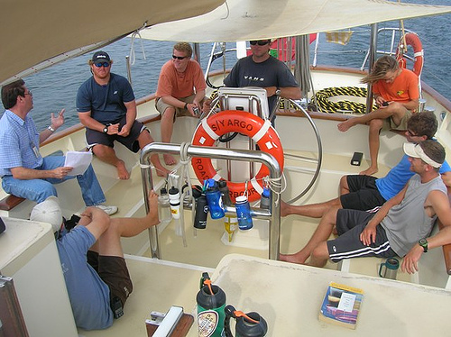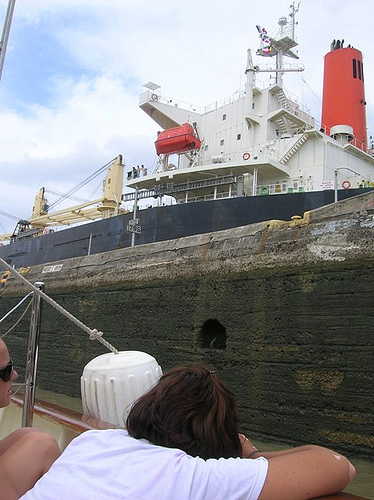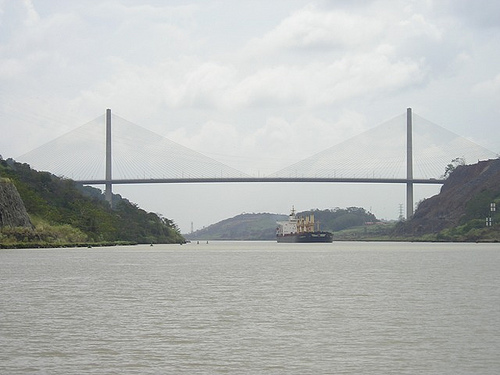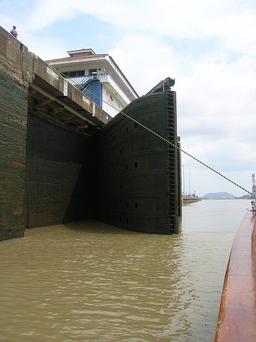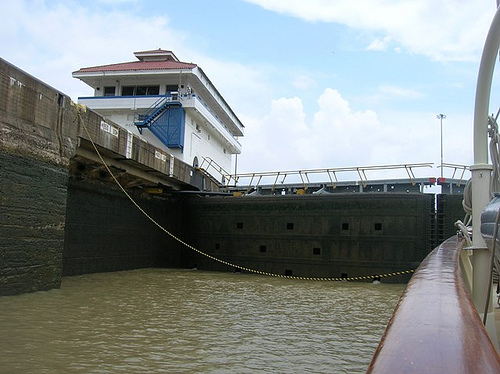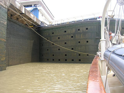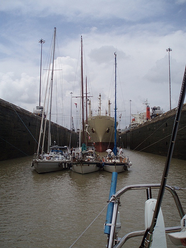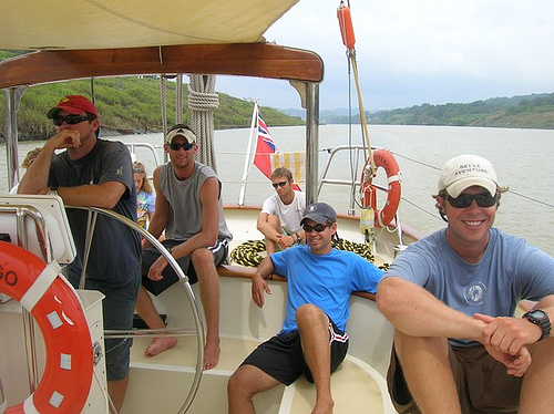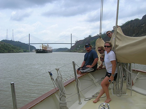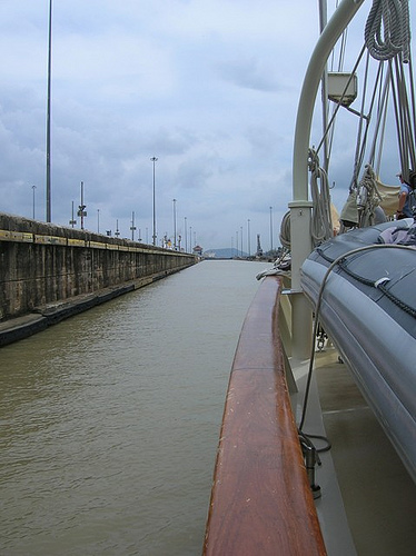 We began the day early in the freshwater lake, Lake Gatun. While awaiting our pilot, we listened to the calls of the howler monkeys in the surrounding jungle. As the sun rose over the assortment of container ships anchored close by, we enjoyed breakfast. Another of many firsts for us, the first time Argo has been in freshwater! At about 09:00, our pilot boarded, and we began our trip through the lake and rivers to the Pacific side of Panama. After lunch, we transited the Miraflores locks and descended back down to sea level. Argo saw the Pacific for the first time, and we motored to Isla Flamenca and picked up a mooring. The marine biology students excelled on their marine life identification quiz, and we settled early for bed.