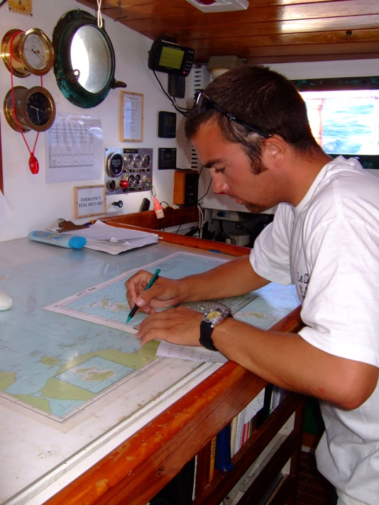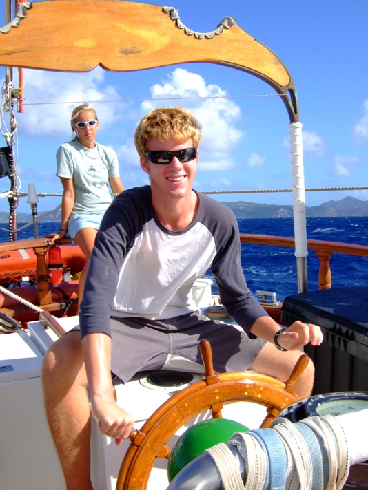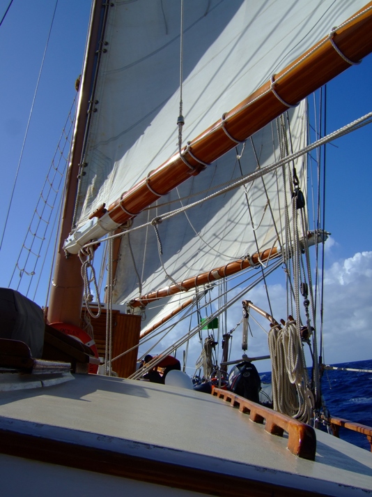 As soon as the first rays of sunshine poked over the horizon, the crew of Ocean Star was up and raising the anchor. We departed from Ile Fourche and motored back to Gustavia, St. Barths. As soon as we entered the harbor, we dropped anchor, and Boomer took off on Irving to clear us out of St. Barths. While Boomer was clearing, the rest of the crew undertook sail preparations. We then raised anchor and set sail for the island of Statia. We had good wind coming from the east, and we averaged about 8kts of speed. The passage overall was exciting. We performed some jibes and maneuvered our way through sticky situations around big moorings and oil tankers. We anchored off Statia in the early afternoon and got lines, sails, and the deck squared away. Henry then gave his presentation on Statia, and shipmates spent the remainder of their afternoon studying, practicing chart work, and swimming. Dinner was prepared by Kirsty and Tyler (it was delicious!), and shipmates enjoyed discussing their most embarrassing moments as they ate. After dinner clean up, students had marine biology, learning about marine mammals and birds of polar seas, and spent the rest of the night working on their Oceanography projects.