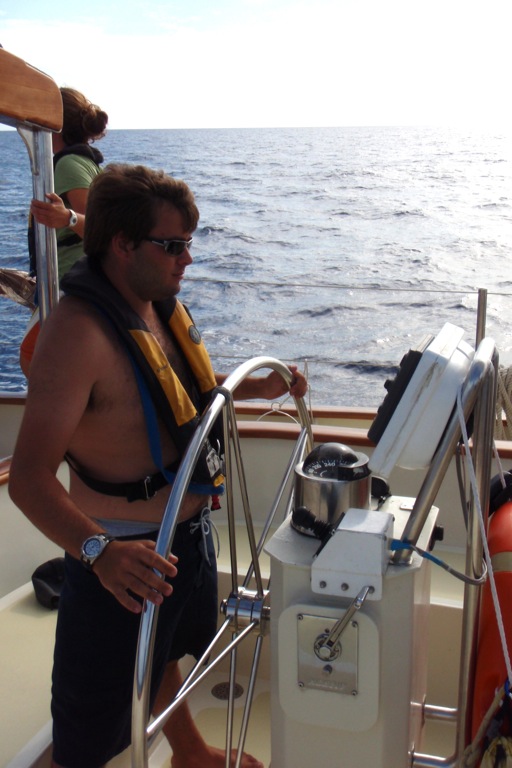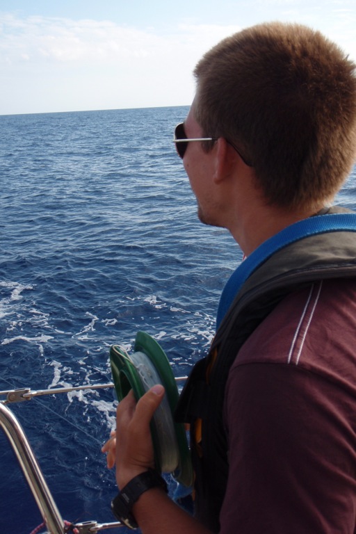 S/Y Argo’s spring 2011 voyage has just rounded the western coast of Cuba! The day began with watch team 2 starting off the day from 0000 to 0300. After that, was watch team 3 (aka Tres Amigos, aka Team Awesome), which is my watch team. We secured the boat for the next three hours and finished with daybreak. Nothing too interesting happened while under night watch except for watch team 3s, who usually have great sailing skills. After everyone was up and about, it spread quickly that it was Captain Steve’s (aka Wildcats) birthday. We all hope he had a lovely day. Lunch was cold cuts and sandwiches. After lunch, the crew went below deck for class, and watch team staff took over the vessel. Class was fun today.