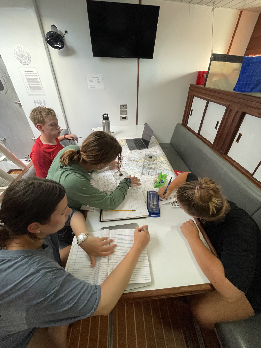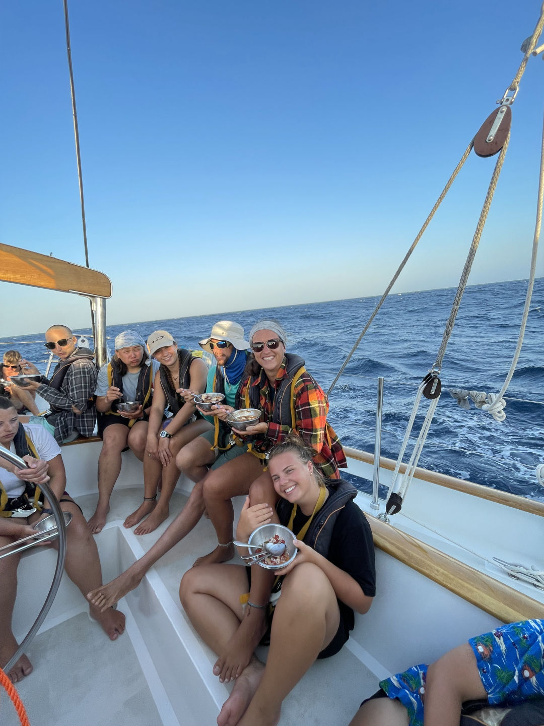 After leadership, Drew and my watch team (team 3!) took over for the afternoon watch, and we all kept on without a day-to-day passage watch schedule of helming boat checks right up to the sunset, which I’m watching through the porthole as I write this. We’ve got a few more days of passage, but it seems like the crew got into the swing of this pretty quickly this time around! The next few days into San Blas should be pretty sweet sailing. One last thing before I close this up, remember: we love the blues. They are the best (Allie made me write this too).