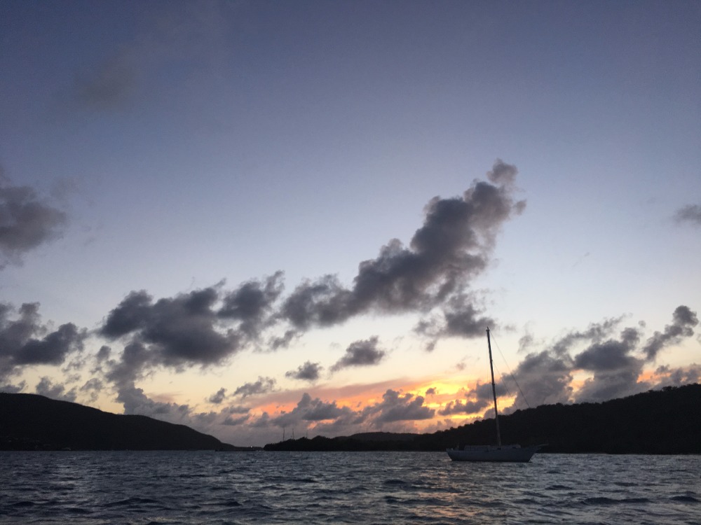 After pulling through their first night passage, the crew of Ocean Star saw dawn break just ahead of the steep cliffs of the island of Saba. They were also lucky enough to catch sight of a pod of pilot whales, only a boat length or two from the starboard side! After passing under the lee of Saba and thereby getting out of the chop of the open Caribbean Sea, the crew assembled on deck for lunch. It was my personal favorite Tuscan White Bean Soup served up for lunch, and combined with the calmer waters, the food quickly mixed with a conversation about the previous night’s trials and tribulations. Smiles and laughter broke out when describing some of the odd predicaments people find themselves in on night watches. After making our way down to St. Kitts, we decided to throw up some more sail for some added speed to drive ahead to Nevis. We arrived shortly thereafter at around 4 pm and set anchor just outside Charlestown. It was time for a quick wash down of the boat before the squeeze and a night out at Sunshines. Dinner was a hearty meal of chicken and fish, and it was eaten up as quickly as it was laid out. We had the privilege of dining with the crew of Sabamba, who were on their 21-day ActionQuest Minerva Voyage. Some of our crew had friends from previous programs at the table, and catching up and reminiscing was fun. A great day has passed. Everyone seems happy and confident, having conquered his or her first passage. It is great to see the students move about the deck and hoist sails and anchor with familiarity. More good things are to come as we have a lot in store for tomorrow!