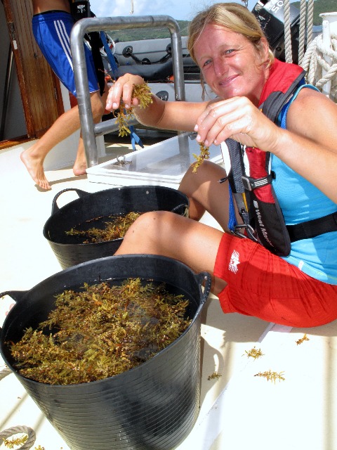 Today, we enjoyed one more day at the Tobago Cays, the other Caribbean, the quiet, beautiful, lay-back-and-enjoy-every-sunset Caribbean. After enjoying the marine life, the sandy beaches, the short hikes to the top of little islands dominated by the iguanas, and the sporadic early morning rain showers at the marine park, we moved today to the only one of the Tobago Cays islands that are populated: Mayreau. Before that, though, we took our time to complete our second Oceanography quiz. Grades are yet to be announced, but the general feeling is positive. On the way here, we had the chance to catch some, a floating brown alga, and sieve through it, searching for marine creatures, such as shrimp and juvenile crab, that hide in it and use it for a protected ride across the seas. Once in Mayreau, we tidied up the boat and made ourselves ready to explore the island. It offers spectacular views from the top and is adorned by very photogenic beaches. After checking some of the restaurants in town, we made our way up as a group. At the top of the hill, in an idyllic frameset, we developed an inspiring discussion forum on the importance of values in our lives. Shortly before sunset, we made our way back to Ocean Star, where we enjoyed the Student Leadership class as well as freshly caught fish for dinner. Now, most are getting their sleep to prepare minds and bodies for the next chapter in our trip: Tomorrow, we will be leaving the quiet outlying Tobago Cays to visit the lively Bequia.