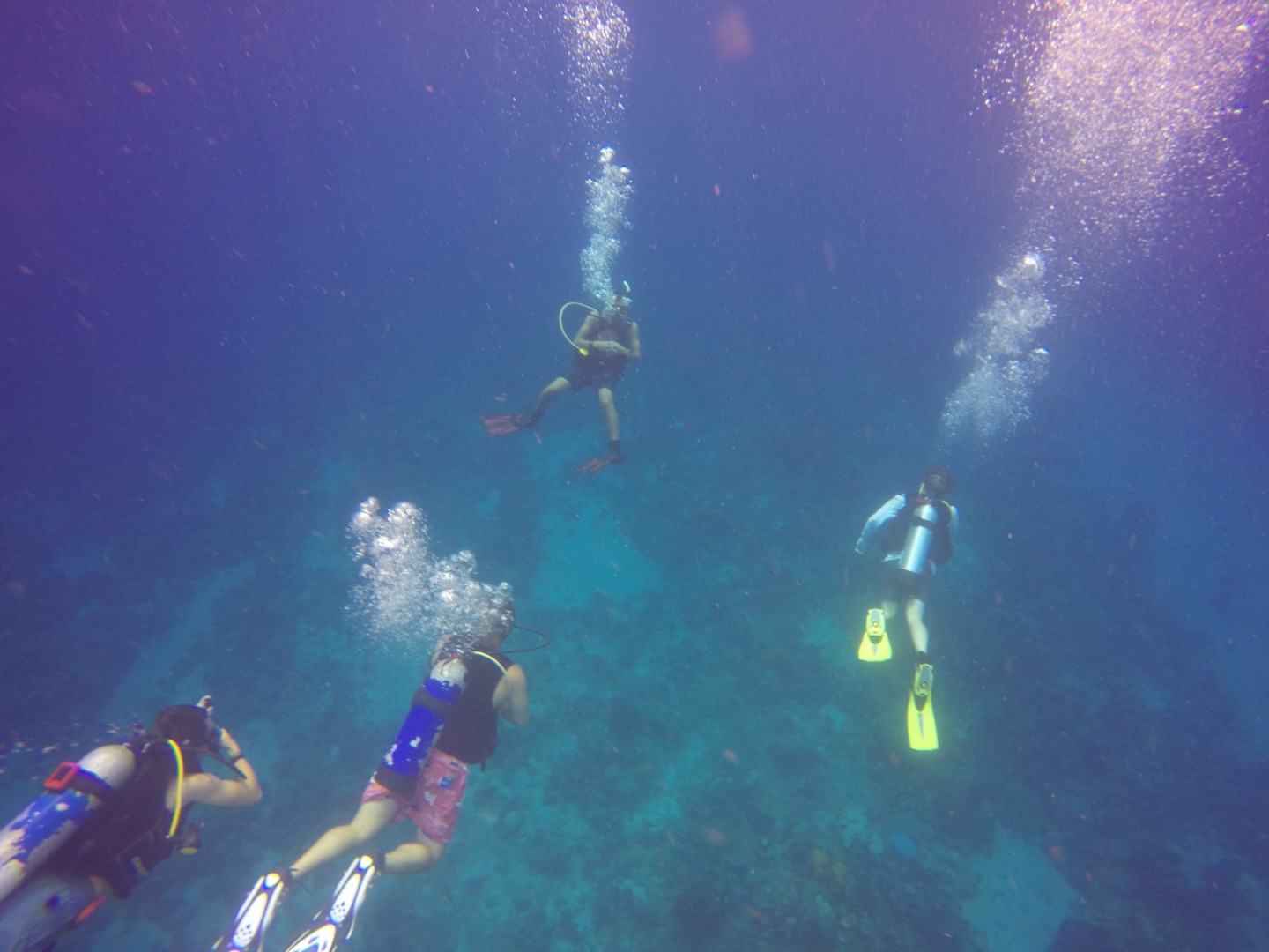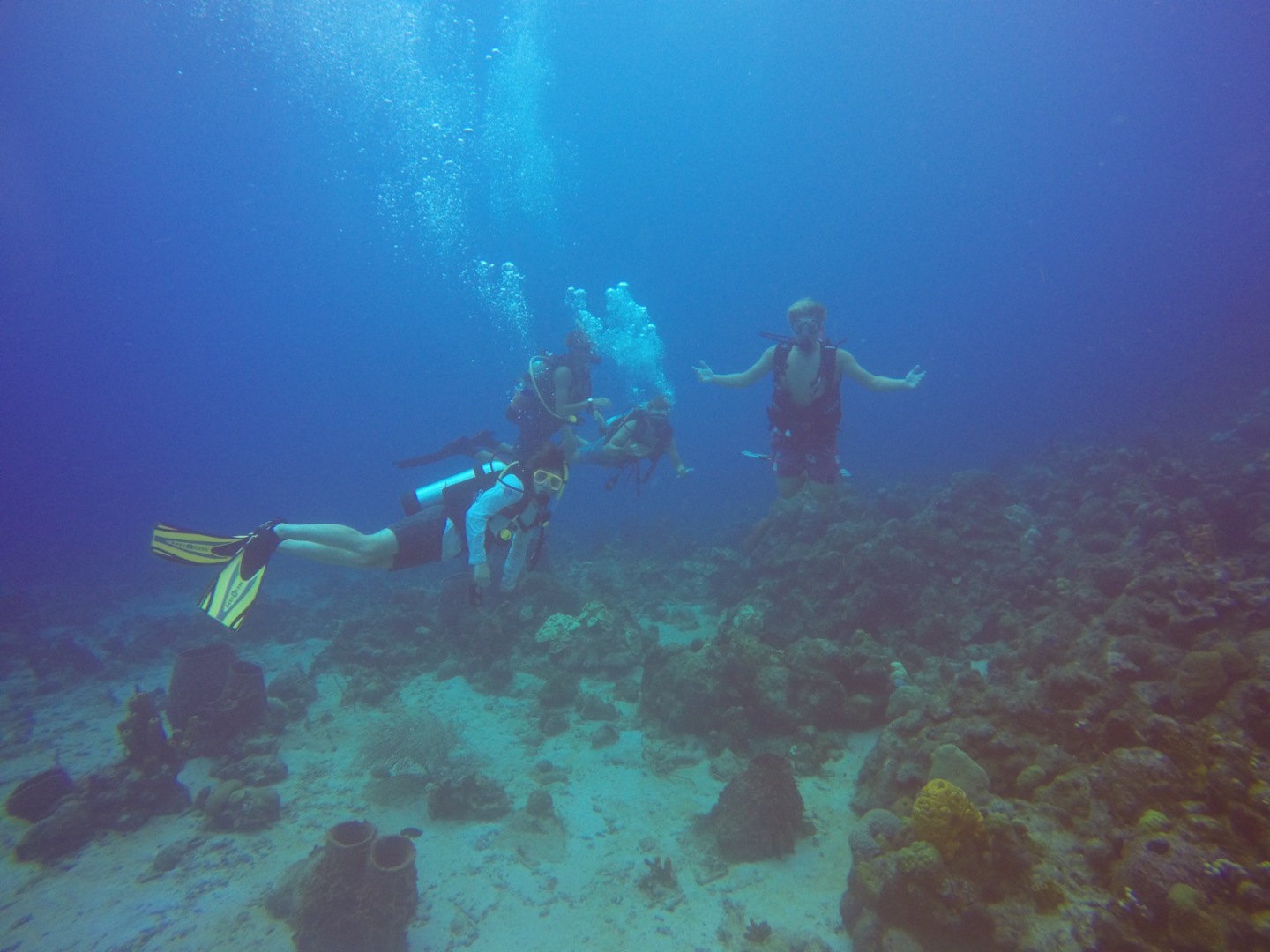 Dive group 1 consisted of Matt, Steffen, Miranda, Jill, Amy, Carolyn, Kaiden, Joseph, and Eli diving with Josh sitting surface as part of his PADI Dive Master training. I was a part of dive group 2, accompanied by Amanda, Nate, Brit, Ridge, and Josh, who led the group also as part of his training. Waiting for us underwater was a plethora of vibrant corals and reef fishes, as well as a statue of Jacques Cousteau himself!