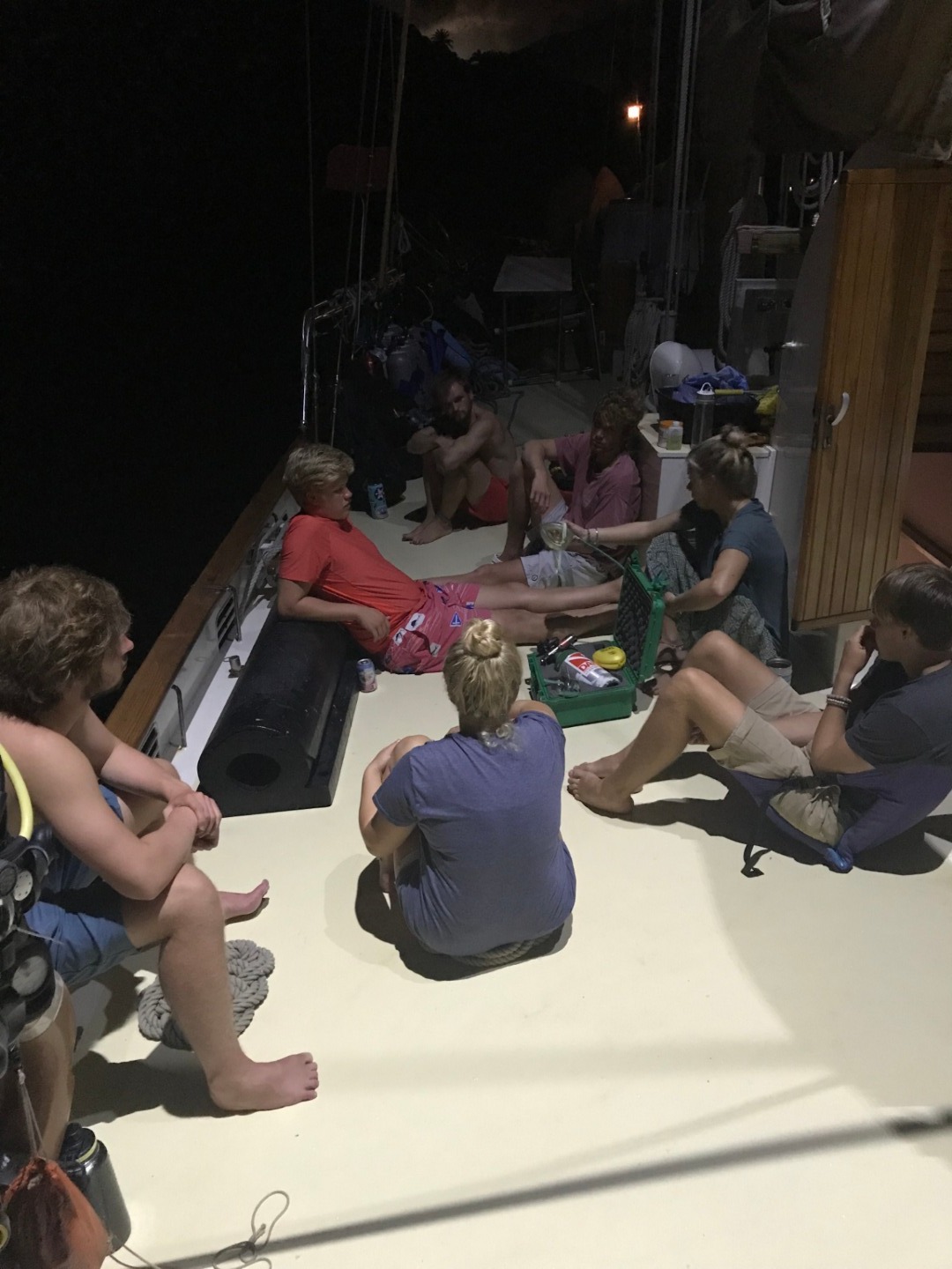 On completion of the morning’s diving, we had a quick run ashore to take advantage of some fresh produce before departing Pigeon island for Deshaies. With an oceanography class down below underway, Carolyn, Amy, and I were treated to glass out conditions for the 10nm journey up the coast. Deshaies is a picturesque little anchorage on the northwestern tip of Guadeloupe. Once the anchor was down, we took full advantage of its crystal clear water, with the whole staff and crew ending up in for a swim messing about and admiring the sunset. There was a commotion as a few people finally claimed to have seen the mythical “green flash” as the sun sets over a flat sea.