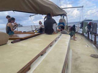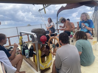 Today was a good day! We had a leadership class, and sadly, our final oceanography class was before the finals. I think that as the semester is slowly coming to a close and classes are wrapping up it’s becoming fairly surreal for some people. Having one of our last classes, Leadership, almost over, and having our last Marine Bio class tomorrow, it’s just kind of sad to think about leaving. After lunch today, however, we went ashore and had a lovely dinner and some yummy ice cream for dessert with a little walk around town. EVeryone was dressed up in their best to celebrate the three birthdays we have this month, big happy April birthdays to Hannah, Alev and Zoe! 🙂