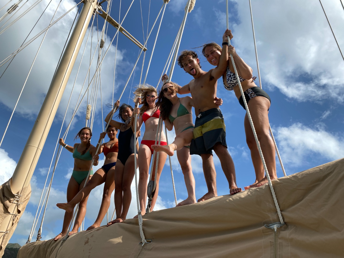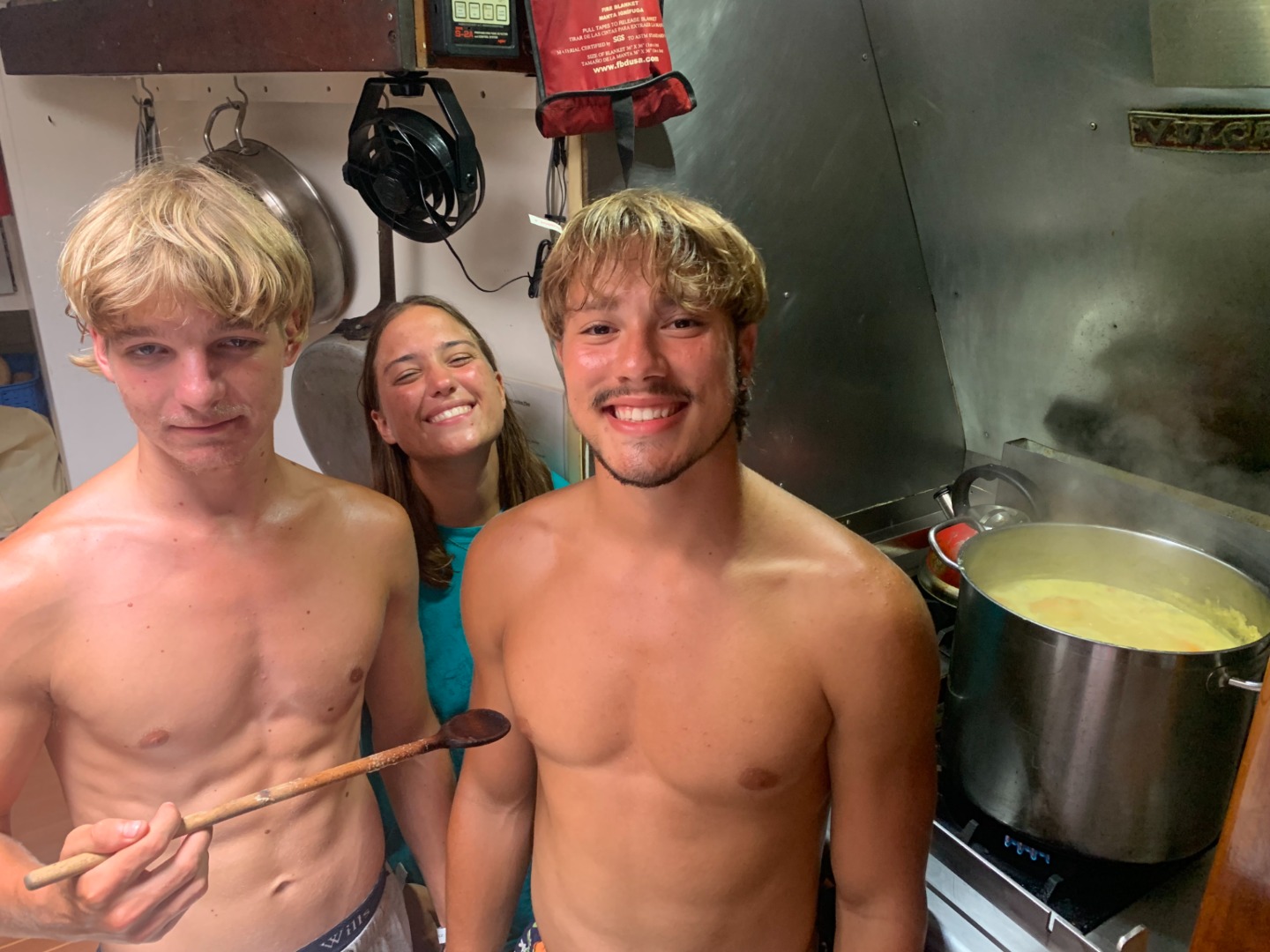Dinner consisted of two exceptional lasagnas (a meat one for the meat lovers and a vegetarian one for the vegetarians). With full bellies, the crew held hands/pinkies for their daily Squeeze. This evening’s question was: “What was your favorite elementary school PE/recess game?” Some of the answers included Gaga Ball, Kickball, Dodgeball, and Tackle football, to name a few. Sharing these games sent many reminiscing of their childhood memories. This evening was also the last that the crew would be spending with their Captain Nick, whose presence was greatly cherished over the past days.