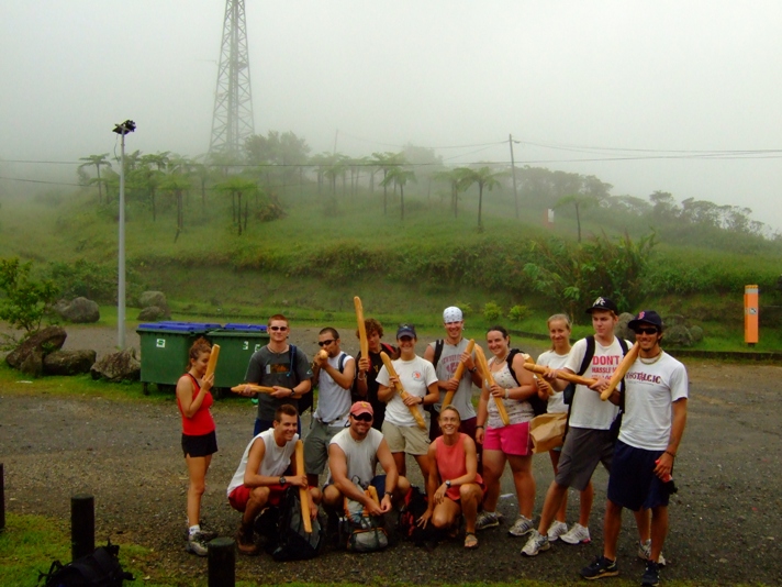 Today was a day of exploration. After a quick breakfast, we made our way to shore and boarded a taxi (not before we stopped at a bakery and bought 13 baguettes) headed for Mt Pele. Mt Pele is a volcano that overshadows the town of St. Pierre. The last time it erupted was May 8, 1902. The eruption completely decimated St. Pierre and left only one survivor. Now, the volcano serves as magnificent scenery and provides exciting hiking opportunities. Once we had been dropped off, we began our trek to the summit. The first part of the hike is commonly referred to as the Spirit Breaker’ because of its high level of difficulty. However, it did not break any of the Ocean Star crew. As we hiked up, we couldn’t help but feel as though we were exploring some lost world. The lush vegetation looked prehistoric as cool, dense clouds cascaded along the entire surface of the volcano. At the summit, we enjoyed our baguettes and the momentary views in between cloud breaks. The rest of the hike down consisted of our captain pretending to be King Kong, tarantulas running across our feet, and lots of slipping. Afterward, we returned to Ocean Star and enjoyed some diving and backflips off the cap rail. Kirsty cooked us up a delicious dinner of Creole lentils, and we enjoyed finishing off the day by watching a documentary called Air Jaws.