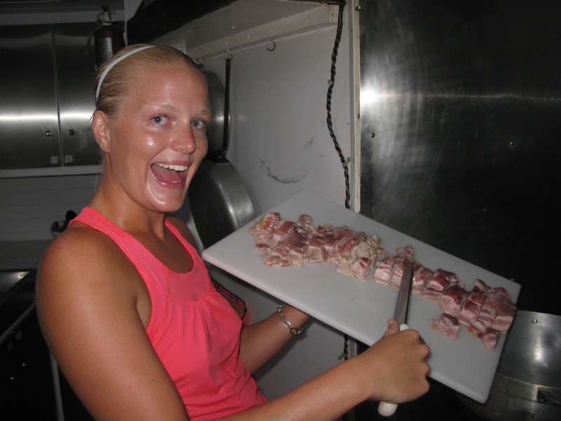 Every night before dinner, we participate in an old Sea|Mester tradition called “squeeze.” We sit around the dinner table as the sun fades away in the background and join hands. The skipper of the day then poses a question, which ranges from funny (What kind of superhero power would you like to possess?) to more serious (What changes have you seen in yourself while aboard Ocean Star?). The skipper of the day answers the question they posed, then passes it around the table by squeezing the next person’s hand until each shipmate answers the question. From my very first day aboard, I have found this to be the favorite part of my day, as everyone comes together as our Ocean Star family and shares a personal piece about them. It’s a wonderful opportunity to get to know my shipmates better. Sometimes we laugh, sometimes we support each other. But every time, we leave the dinner table with just a little more information about the person sitting beside us and come together more as a group because of it. Tonight we shared our favorite quotes/mantras to live by. Quotes reflected the personalities of the shipmates and showed that we all shared the same passionate approach to life, choosing to “not sweat the small stuff” and “live each day to the fullest.” I would like to end my blog with the quote I shared tonight, which I believe relates to each of us aboard. Though our reasons for coming aboard Ocean Star vary, we all made the amazing choice to travel and live 80 days on a boat in the Caribbean: