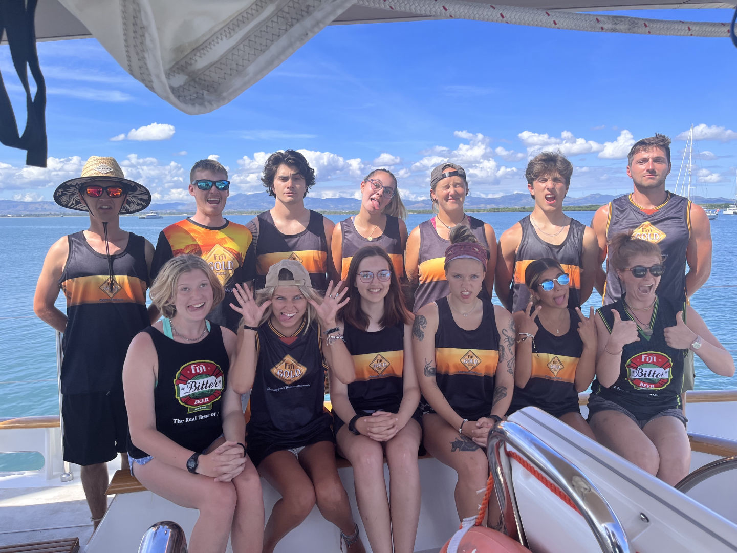 That being said, today we woke up anchored outside of Denarau, Fiji. I slept really well with the breeze that filled our room during the night, which made me snuggle up in my covers for the first time on this trip. Then, I got to wake up early and enjoy the quiet hours of the morning before waking every student except for Margaret :/, which I actually find hilarious and very much enjoy doing. Then, after breakfast and some time relaxing in the sun, we met in the salon for marine bio, which stuffed my head full of information about multicellular marine organisms. Ahhhhh! Then, almost right after that, we had a seamanship class on some basic boat lingo and sail anatomy- its super cool. Then, I found out that two other people and I had to present tomorrow for parts of the boat presentation that we totally procrastinated on. So, we busted out a presentation with some pics pretty fast before being interrupted by an awesome veggie-packed lunch. For lunch, Kee and our awesome sous chefs cheffed up protein bowls with chicken, chickpeas, and so many fresh veggies while bread maker Ethan made some INCREDIBLE garlic bread that had everyone oohing and awing.