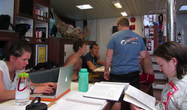 It says a lot about a crew that is willing to wake up at 5:30 am and hike uphill in order to get the best vantage to enjoy sunrise together. This is a highly passionate and dedicated group known as Argo. Faced with another jam-packed day of activities and jobs alike, the OW divers completed their final dives and became honorary citizens of the aquatic realm. After this accomplishment, a relaxing day at the beach and a stroll through town were well-earned. Meanwhile, advanced and rescue divers took the initiative and led their own dives with confidence, experiencing past octopus and lionfish and finding new satisfaction within the group. When given opportunities, it is becoming second nature for this group to rise to the occasion. After a great dinner and an introduction to upcoming science classes, the group is on to the next task of learning about the reef fish that twinkle amongst the reef.