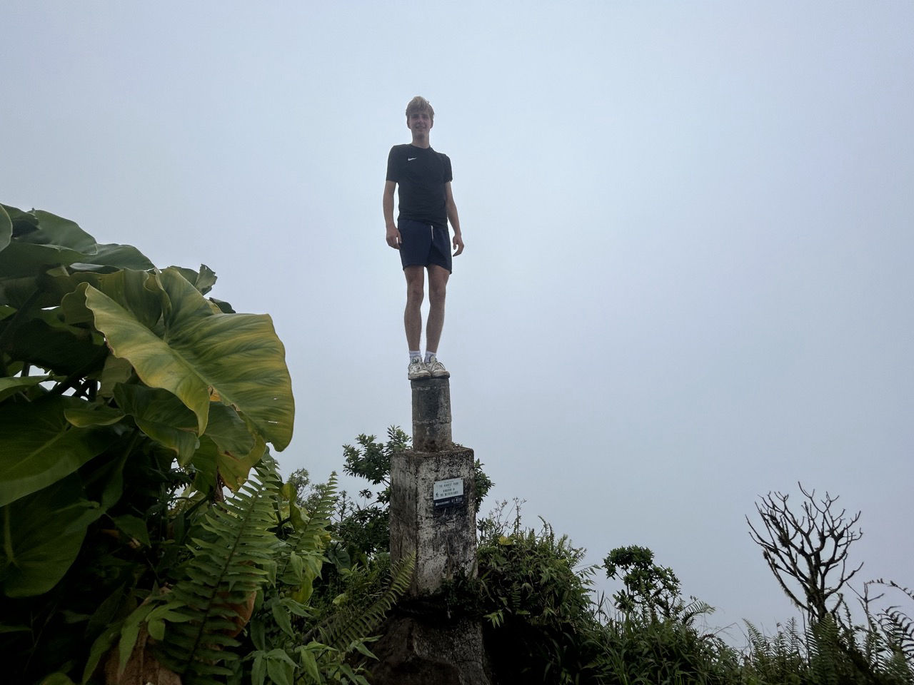 For all the hikers out there who love to hike steep inclines, the following hike is definitely for you. Through Bottom, we started hiking towards our destination town on the windward side of the island called Windward (no joke). We started the hike following a pretty steep street. Around the corner, a small sign signalized the start of the trail towards Windward. What a beautiful trail it was. It started off with beautiful bougainvillea and palms, but as we went further up the path the vegetation changed into a rainforest with elephant ear plants everywhere. You can see a size comparison with one of their leaves and my hand in the blog pics 😉 Absolutely breathtaking; I wanted to look at each and every plant.