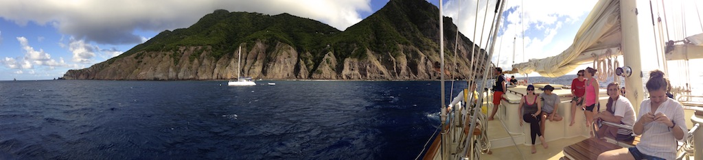 Day 10 revolved around the mystical island of Saba, a rocky mountain island covered in dense tropical forests and an eerie fog surrounding it. In other words, it looks like a miniature version of the island from Jurassic Park. Today, Argo’s crew had the option of diving into Saba’s underwater wonderland or enjoying some solid ground and vegetation. The groups split in half, and I decided to take a break from the ocean and go in for some shore time. Driving up the windy roads, the scenery consisted of an obscene amount of goats, greenery, massive mountains, and quaint villages with matching red roofs and white walls. After arriving in Windward, one of Saba’s three towns, we enjoyed the view and met with the hospitable people of Saba. Many of us did some provisioning and trinket shopping at Jo Bean’s glass shop and stopped for some bacon cheeseburgers (a rare delicacy to those onboard Argo.) The view of the ocean was breathtaking; Saba really is one for the books. Now we are underway to Les Saints, which is around 145 nautical miles from Saba, and we had the pleasure of enjoying Head Chef Dave’s cornflake chicken pasta, a strange and interesting combination. Hopefully, we have many more days like this one aboard Argo. ~ David P., Skipper of the day