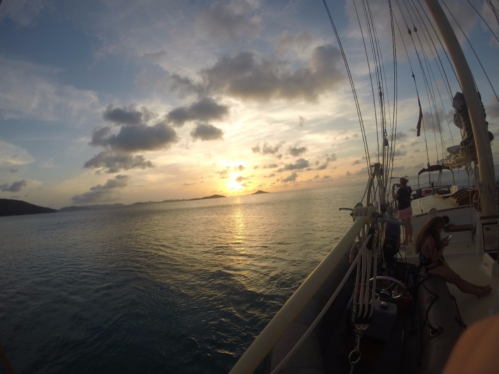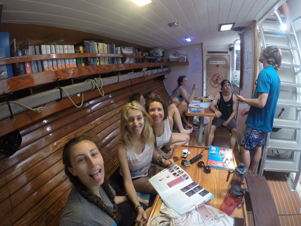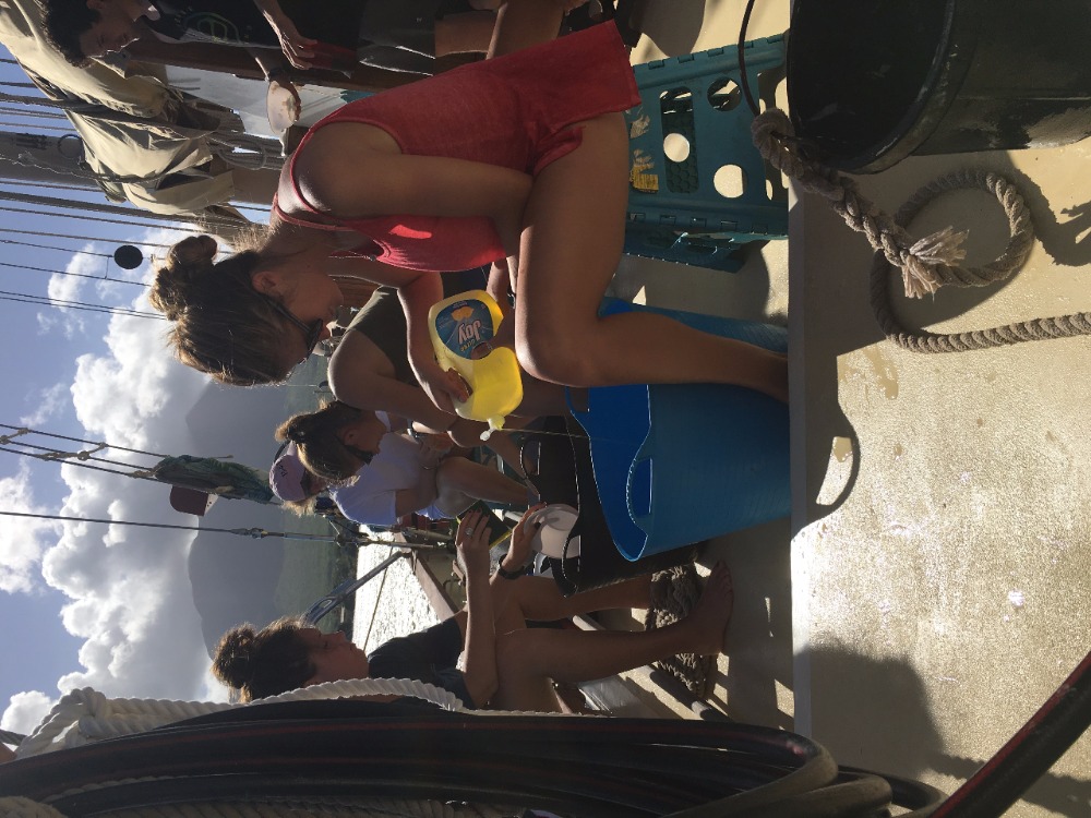 A couple of hours later, we saw salvation; it truly felt like seeing an oasis after months stranded in the desert, downhill, was upon us. At that moment, everybody forgot about the struggle and enjoyed the ride down and back to the starting point. Let me tell you that the feeling of satisfaction and amazement with our abilities was better than any prize. We met up with Kat and Annemarie, who had a “really relaxing time kayaking.” The squeeze question tonight was truly based on the metaphor for what the bikers went through today, that being “We went through a lot of ups and downs today, and that’s a lot like life, so what is one of the roughest moments in your life, and how has it made you stronger?” It was a nice moment among all of us to be able to open up and share with a close group what we truly felt. After that, we all realized that every day we become closer and that being on Ocean Star really gives us a safe place where we can be ourselves among people whom we didn’t previously know existed a couple of weeks back. We feel like we can trust each other. I mean, you put people on a boat together, and they become close really quickly. To close the evening, we had our first sign-out night at Sunshines. The funny thing about getting to Sunshines is that it is a wet entry, and you will get thigh-deep in the water at the beach… let’s just say Gigi and I had a rough moment there and ended up getting soaked! The food was amazing; people were amazing; the conversations were amazing…Ocean Star is truly amazing. And like the great Forest Gump would say, “That’s all I have to say about that.”