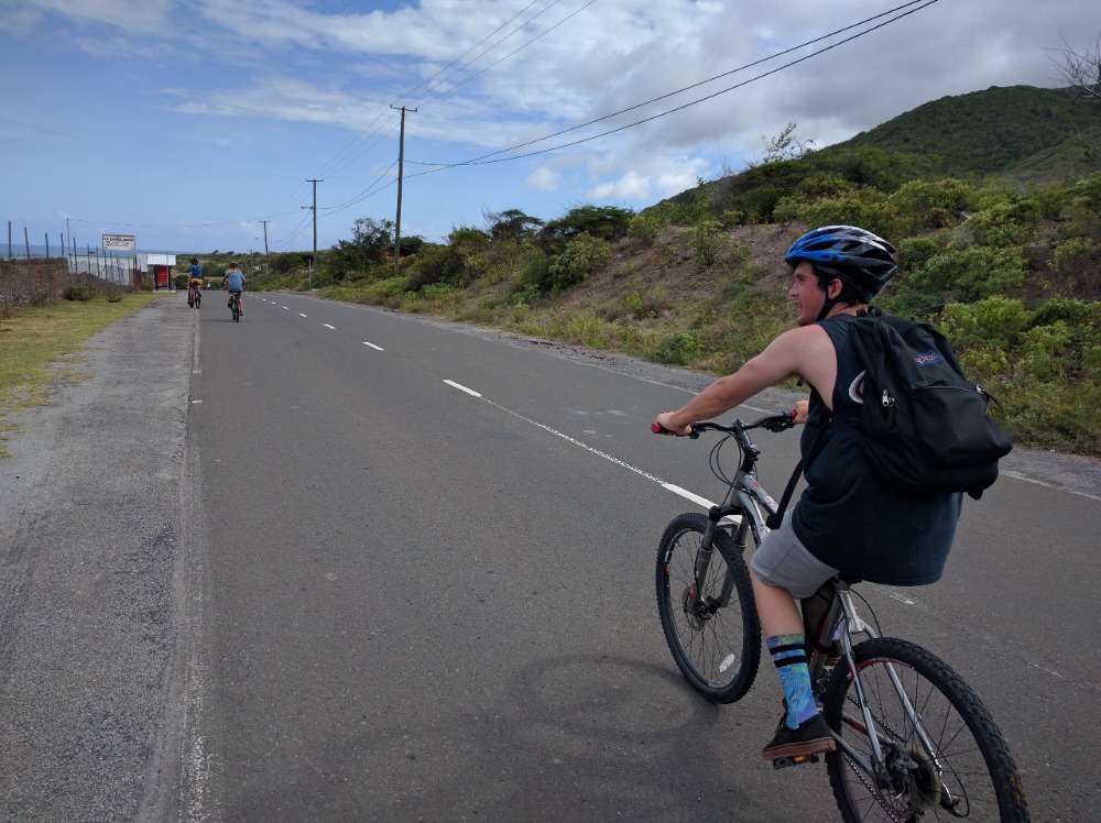 Today our captain, Smudge, said something which has resonated with me and will continue to do so for some time – “Those who are not present here do not and will never truly understand what goes on in this boat. You will be able to share stories and try to make them understand, but they will never really grasp it.”- Waking up to hear that Matt and Alexis were leaving Sea|mester left the rest of us in a state of shock and sadness. On Ocean Star, we are not just students; we are not just a crew; we are a family that comes closer together every day. That being said, we will remember the smiles, laughs, and all the different moments we had with Matt and Alexis, and for those of us who are still here, we will continue to make new ones. Even if our morning was quite upsetting, we quickly shaped up and continued with our day; it seems we can never really catch a break from the action! Next up for the afternoon, bikes and kayaks! But it was not just any bike ride; it was a ride around the entire island of Nevis.