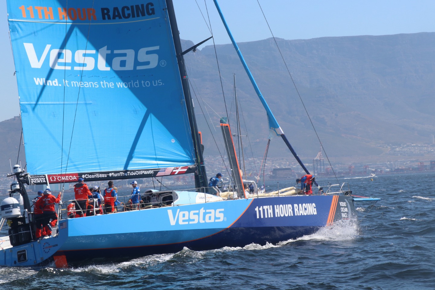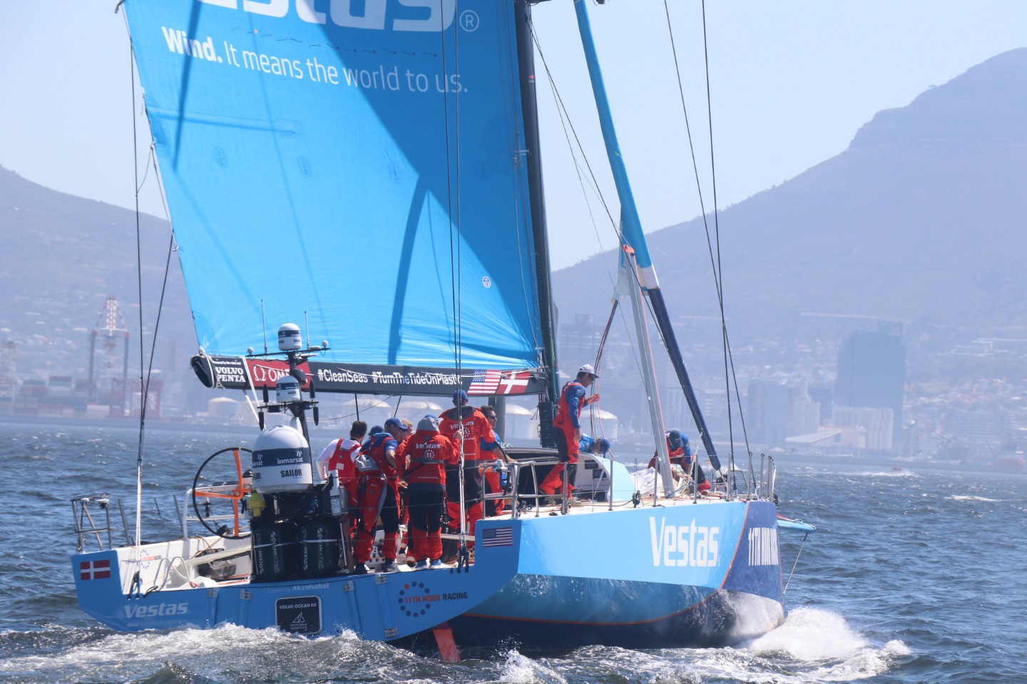 The warm weather and cool breeze we’ve experienced since arriving in Cape Town have been a welcome relief to the cold passages we’ve had along the South African coast. This morning was exceptionally nice, and the sunny morning was accompanied by perfectly baked chocolate chip muffins. Post breakfast clean-up, Carolyn gave everyone an introduction to the Volvo Ocean Race and the around-the-world race that is currently in Cape Town and leaving for Melbourne, Australia, in two days. We learned about some of the history of the race, the teams, and life aboard. Most people went ashore after the presentation and scattered around the busy V & A Waterfront to do some shopping, sightseeing, and eating. Because there was a scheduled in-port race this afternoon, we all gathered back at the boat and headed out to find a vantage point from which to watch the race. It was exciting for everyone to watch professionals race since we had just finished the last passage of a trip, during which learning all the ins and outs of sailing was such a huge component. At the end of the race, everyone could see the boats come back onto the dock and participate in cheering with the crowd for the winner of the race, Dongfeng. The excitement reaching a conclusion, people started meandering back towards S/Y Argo for dinner, prepared by chefs Elle, Alexander, and Tina, which was freshly made falafel, salad, pitas, tzatziki sauce, and rice. Happy birthday was then sung to Sydney, and was followed by an assortment of tiny cakes. The evening concluded with the last academic exam of the semester, Marine Biology, after which people decompressed and enjoyed the pleasant evening on the deck.
