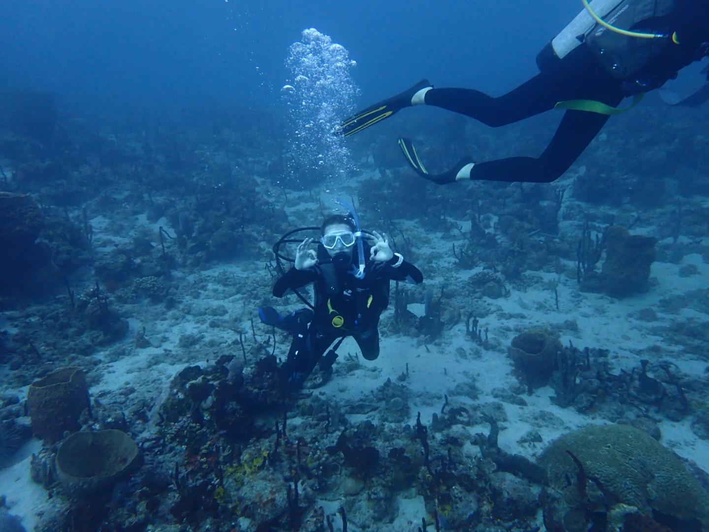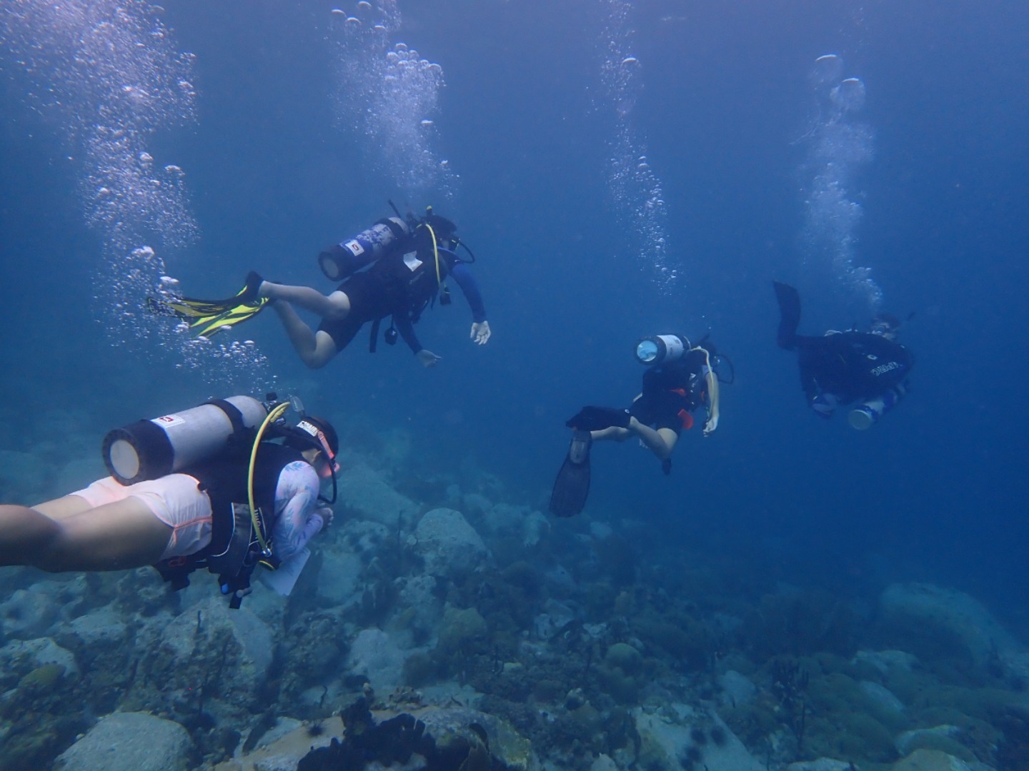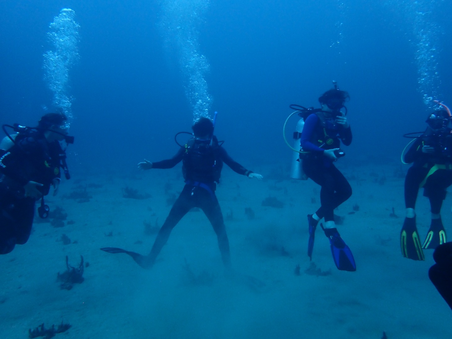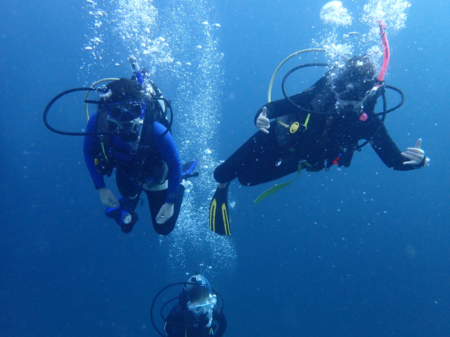 Everyone that had not gone diving in the afternoon set up their gear and got ready for the night dive. We did our “giant strides” from the port side of the boat into the pitch-black water and got into our buddy groups. My buddy was Bella, and Felipe also joined us even though he’s already certified. We reached the mooring line and made our descent into the nightlife of the ocean floor. There were eels, lobsters, shrimp, brittlestars, glowing corals, and countless different types of sleeping fish. I kept trying to get Bella’s attention by yelling her name underwater, and even though sometimes she heard me, I also resorted to pulling her fins towards where I was in order to show her something. On our way up, we all pressed our lights into our wetsuits so we could truly immerse ourselves in the darkness and see the bioluminescence. Once on the surface, we swam on our backs towards Argo and identified some constellations in the clear, starry sky.