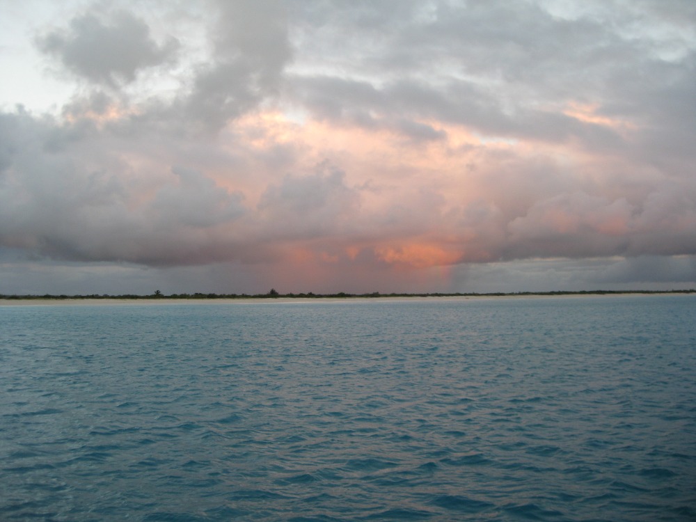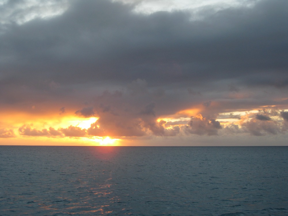 A busy day for the students aboard Ocean Star began as we readied the boat, raised anchor, and set off around the shoals of Green Island, destined for Barbuda. Out of the shallows, we reefed the main and raised the sails with just a little trouble from a fouled Mermaid line. After navigating around a few weather systems and through a bit of rain, we finally sighted Barbuda, which, due to its extremely low and flat profile, could not be seen until we were very close. Nearing the island, we were greeted by a Humpback whale making a full breach out of the water, followed by crashing down into a massive splash. We chased after it for some time but sadly, no more breaches.