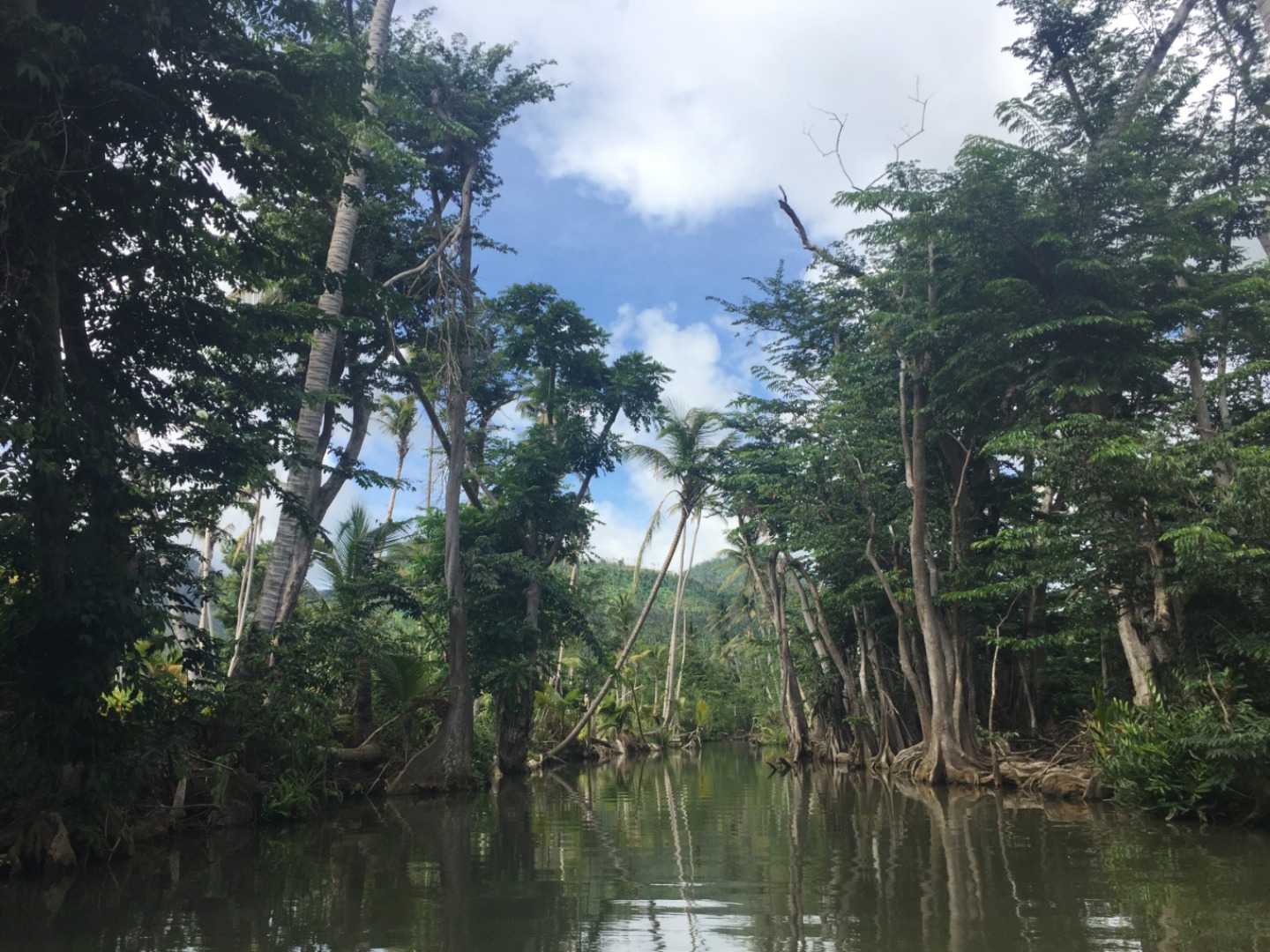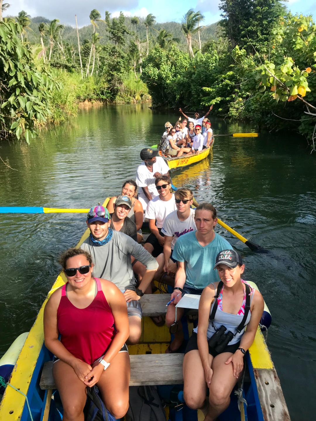 Once we got to Portsmouth, our group got to go on dry land. However, gravitating to water as we water-lovers do, we did not stay on dry land for long but instead simply headed from saltwater to freshwater on a river tour. It was one of the more relaxing excursions that we have done so far. It consisted of a boat ride for about half an hour (where we didn’t have to take down any lines, make any food, or clean anything at all) to a small cafe where we got the most delicious passion fruit juice with… wait for it… ICE! It seemed to be the coldest drink I have ever had, so it got me thinking about the amazing process of making the small frozen cubes. Refrigeration was apparently not invented for home use until 1913. There are plenty of homes today that still have no electricity at all, not to mention refrigeration, which gave me a whole new appreciation for my drink. I digress… but all that is to say is that we really, really enjoyed our cold passion fruit juices!