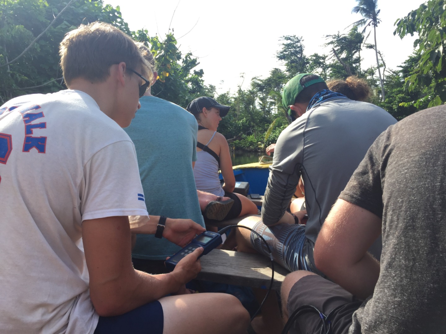 On the way back to Ocean Star, we added some science to our relaxing boat ride. We checked salinity and temperature in eight different parts of the river. Once the data was collected, we gave it back to the people who took us on the river tour, who have been collecting this data for several years.