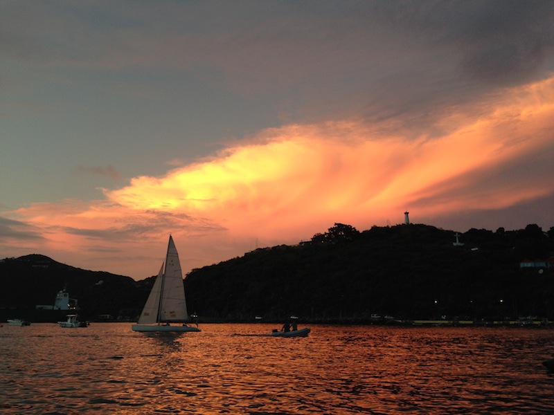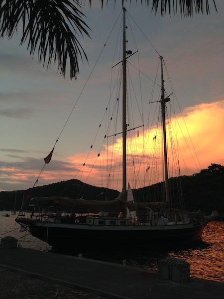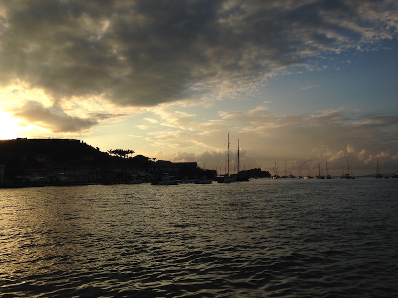 We arrived at our port of call, St. Barths, at 6:00 on an overcast morning. Watch Teams One and Two heroically lowered the sails, put sail covers on, and lowered Irv into the water while Watch Team Three rested their weary eyes. Everyone got a couple of hours of nap time, and then all were awoken at 8:30 for breakfast. At around 9:15, we did an extensive Boat Appreciation, making Ocean Star shine so that she’d look beautiful when docked alongside the mega yachts in glitzy Gustavia. After BA, we hauled up the anchor and headed for the dock where we’d spend the next three nights. However, the simple stern-to-docking process turned into an all-day event (or at least it seemed so to our tired selves). As we approached the dock, we were met with a squall, so we turned, headed back out through the channel, dropped anchor once again, and waited out the rain and wind. When the skies cleared, we raised the anchor once again and finally made our approach. As we docked, we were met with another inconvenience. Capt. Kris wasn’t satisfied with the way that the starboard anchor was holding (keeping our stern from bouncing into the dock during swells), so we unattached the stern lines, circled in the harbor, repositioned ourselves, dropped our port anchor, and successfully docked. After a bit of fiddling with the dock lines to get the alignment perfect, we were free to set foot in St. Barths. We eagerly packed our backpacks full of shower items, clean clothes, and Euros and walked the perimeter of the harbor to the free showers on the other side. Clean and happy, we had some time before and after dinner to wander the streets of Gustavia, eating Gelato and gazing at the expensive jewelry and designer clothing in the windows. We had an eventful day, and in the end, we’re sitting in the harbor of yet another beautiful island, waiting to see what it holds for us. (And congrats to Ben, who learned what his Army job would be!)