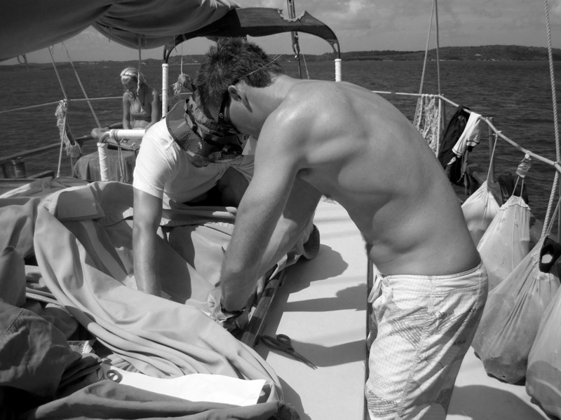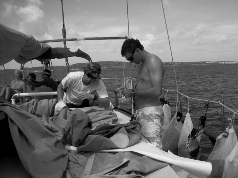 I always enjoy being skipper because it requires me to wake up before anyone else. I have time to make a strong cup of instant coffee before waking the troops. There’s nothing like a quiet morning on Ocean Star. I woke up early enough to do some oceanography work. We have a quiz coming up soon. We enjoyed a breakfast of eggs, and then it was all over it was time to get down. Parents and friends, we’re rescuers now, well, almost. We were broken into two groups to practice in-water rescues. We practiced bringing unconscious divers back to a boat and how to actually transport their bodies onto a dinghy. It’s a little more difficult than one might think. There was definitely a 2-6ing (The call used to synchronize hoisting sails) of bodies. I never thought that would happen. My personal favorite part was being the unconscious one. We had to remove gear, and it was quite exciting. If you ever get into a diving accident, you’re going to want me to be there.