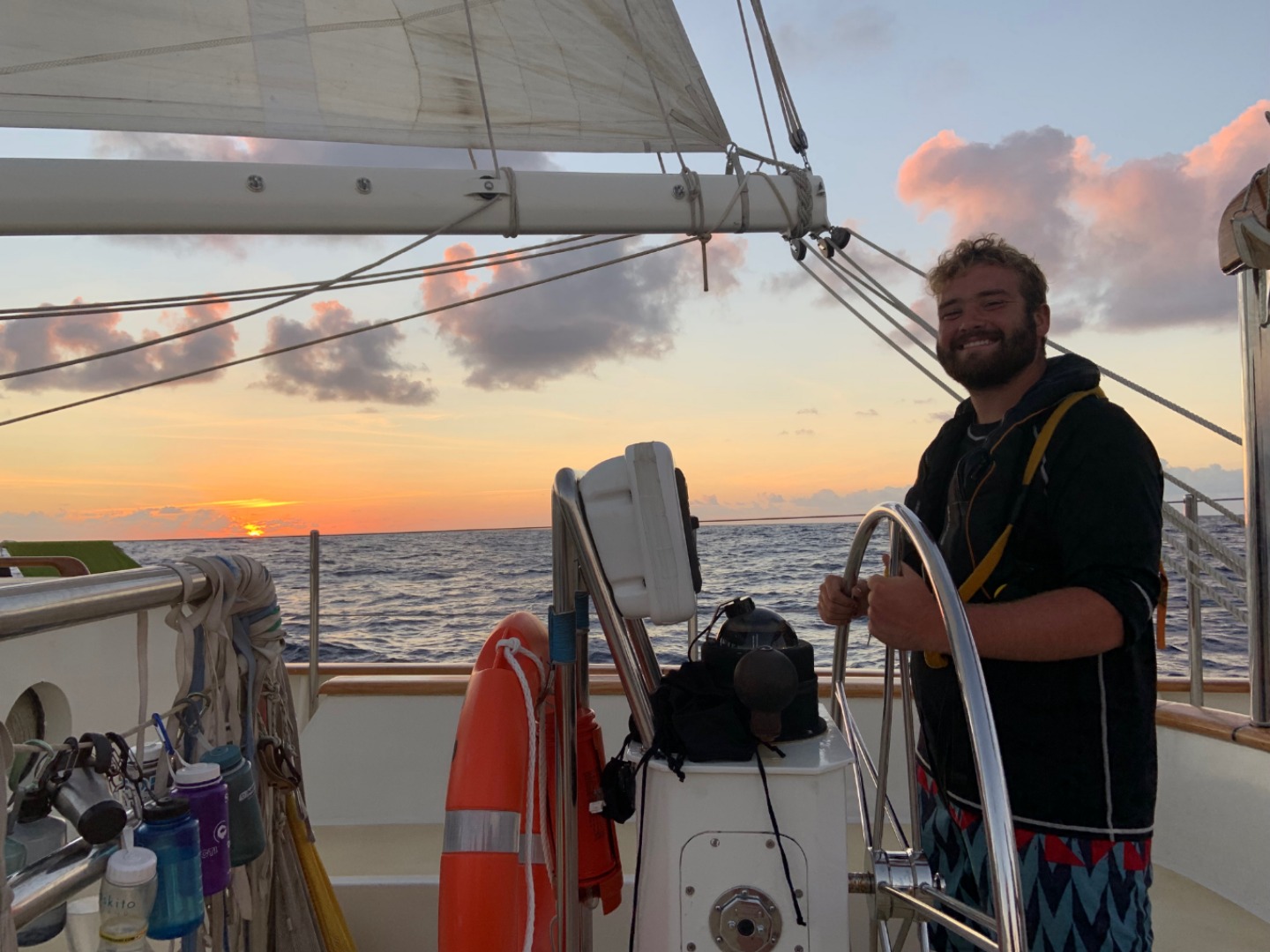 It’s been a thoroughly nautical day. Now that’s not to say that we spend much time engaged in activities that would be described otherwise, what with living on a boat and all, but today had a positive plethora of boat-related activity. We started the passage off with a sailing circle (a way of practicing a few maneuvers we haven’t as yet had the chance to do much of) led by Bryant the wind whisperer himself, and have since set more sails, had a practice NavMaster exam and polished off some oral seamanship exams. Despite all this, there was still time for oceanography with what may have been the penultimate lecture of the semester. All in all, we’re excited to be on the move again and to see another face of what has so far proven to be an awesome country.