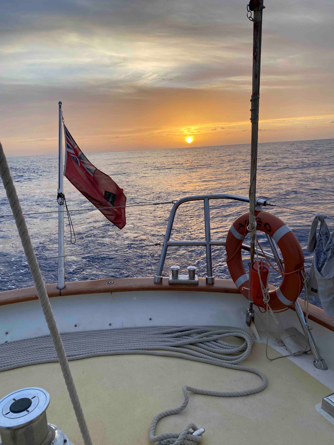 Watch team 2’s day began as we were being relieved from watch promptly at midnight, which had an incredible unobstructed view of stars, planets, and some of the gasses within the galaxy. Today was another beautiful day of passage life with sunny skies and a mild-for-the-Atlantic sea state. Complete with seeing dolphins on two separate occasions and celebrating good ole Tim’s birthday in the best way: with brownies and peanut butter cookies! Plus copious amounts of out-of-sync, out-of-tune, far-too-loud happy birthday singing. We’ve begun our passage into the Atlantic Ocean, heading due east as of 20:27 before we begin our more southerly route to the USVI. It has begun to truly feel like we’re on the way now that we’re seeing more stars, less light pollution, fewer boats, and more of each other.