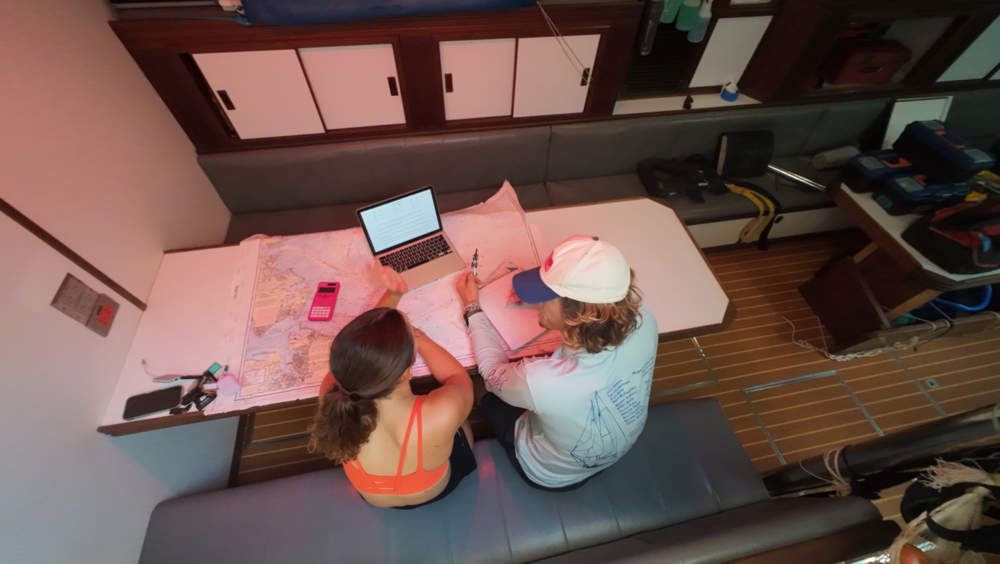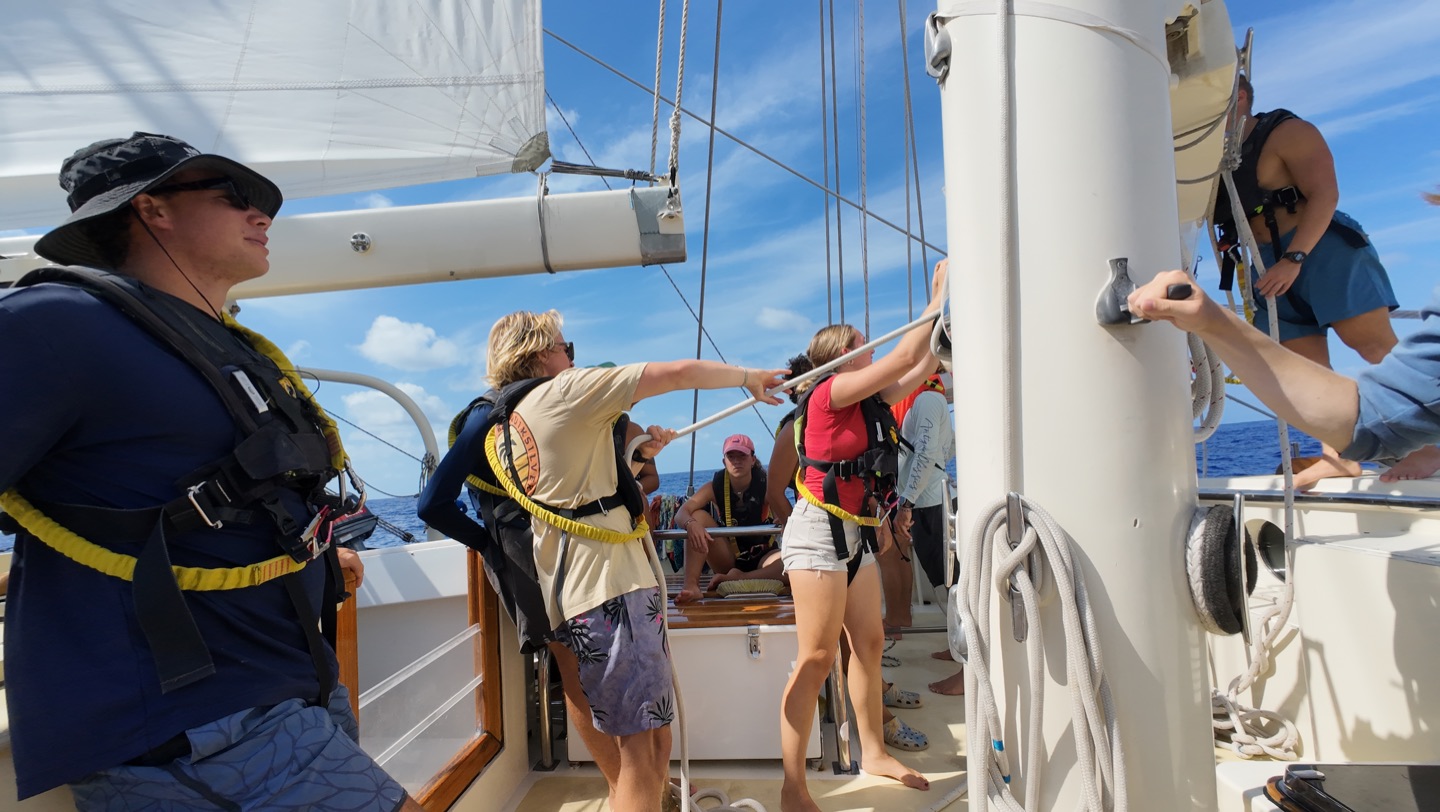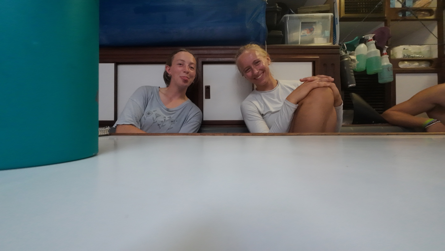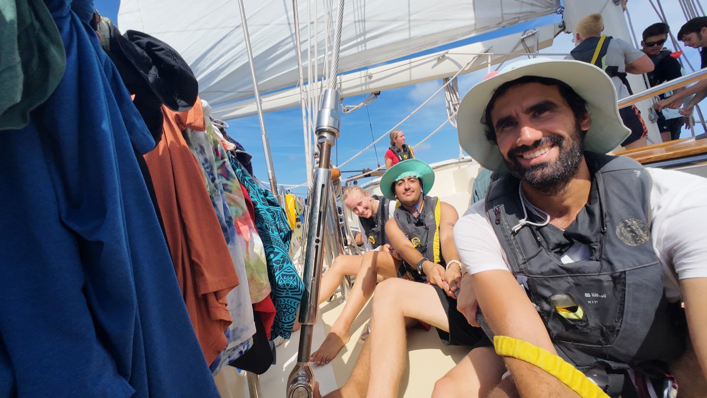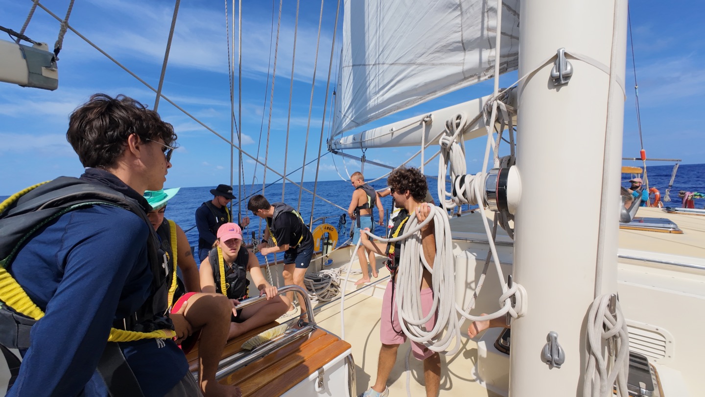 In other news, three nights ago, during our last 8 pm-12 am watch, I finally got my helmsona: trailer park supervisor, Jim Lehelm (thank you, James, for the name idea, youre a genius). In case youve already forgotten, a helmsona is earned when you spend the entirety of your 4-hour watch on the helm. The conditions I helmed in consisted of all of our sails being up and the engine offsome true sailing! We ended up hooning at 8 knots for most of the night because Im a master sailor and a dawg like that. #getlivonthehelm. The first two hours were pretty restless, but the final two were smooth sailing as some conversations developed behind me that I got to listen in on. To my left, Charlie, Sam, Matthew (Tinkletoes), Teagan, and Rachel were discussing the socioeconomics and various other ethical questions. To my right, Emily, Chloe, Teo (Tinker Bell), and Hailey were playing games. At 12am, I quietly finished my helmsona and practically sprinted downstairs so I could go to bed.