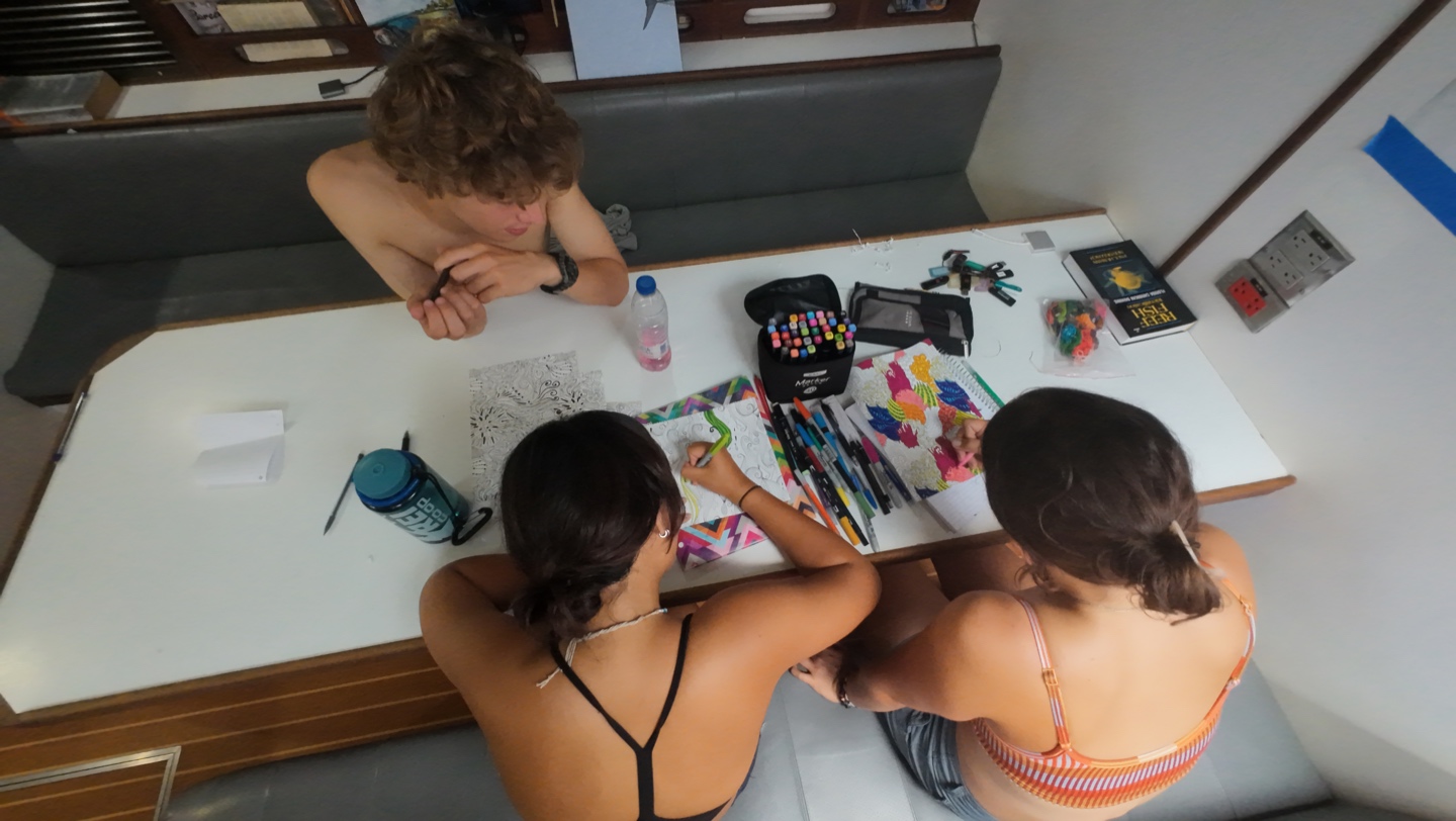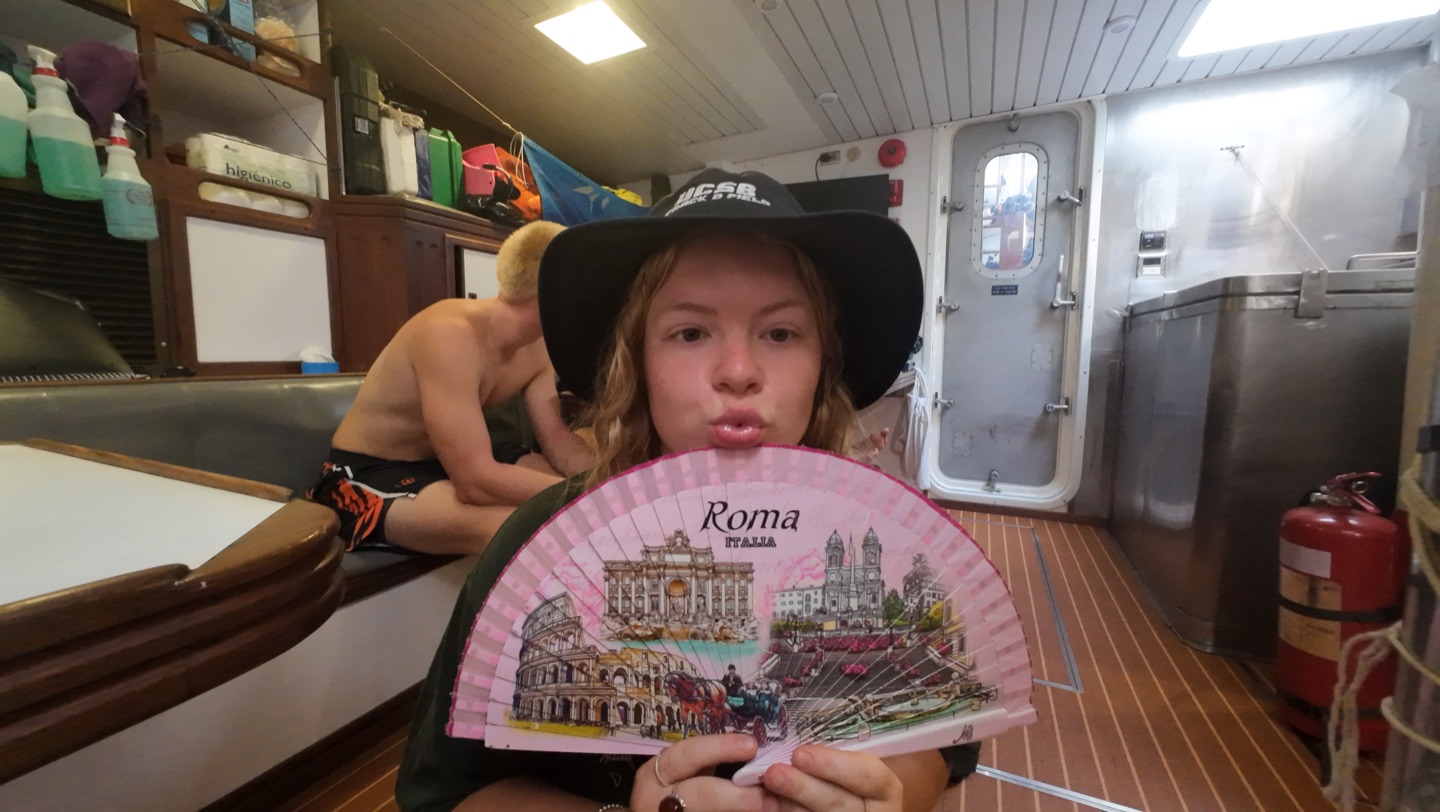 After we ate our lunch, it was all hands on deck. We have to raise every single sail we have, in hopes of catching the wind to bring us across the Atlantic. Then, we took a quiz in oceanography, which i aced of course, followed by a lecture on marine pollution, and a presentation by Sam in leadership class about change. While this was happening, it was about one million degrees in the salon, and we were all fanning ourselves with our notebooks and counting down the minutes until we could go up on deck or take a nap with our fans blasting.