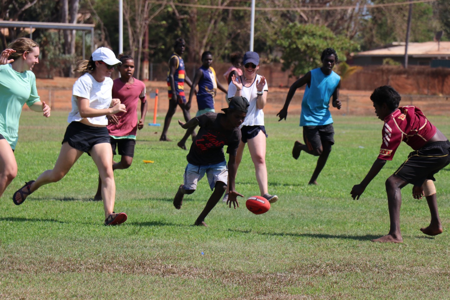Today was quite a day here on the ship Argo. We started our morning with some lovely homemade banana bread made by Eric (personally, my favorite meal on the boat thus far) and some wonderful tunes to go along with our breakfast- provided by yours truly. After our lovely meal, we were assigned watch teams for our upcoming passage to Kupang, Indonesia. The three groups split up and learned their responsibilities that would need to be taken if something were to go wrong while sailing. This includes man overboard, boat fire, etc. (don’t worry, we don’t plan on this happening, but it’s best to be prepared). In the early afternoon, we had some lovely Tiwi Island officials come aboard and check out what we do here on Argo. They were given a full tour of our beautiful vessel and then gave us the pleasure of visiting their island. For those viewers who are unaware, Tiwi Island, an Australian Aboriginal territory, requires a permit to visit, and it was quite a big deal for all of us to visit the wonderful island. When on the island, the locals invited us to go to their recreation center, where all of us played basketball and Aussie-rules football with the local kids. Many of the children enjoyed playing with our iPhones, cameras, and hair instead. We all had such a wonderful time with the Tiwi kids that they even gave us one of their footballs to take home! After we had a great dinner made by Lindsay, rice, and chicken curry (delish!). Overall, I’ve been pretty satisfied with the food I’ve consumed on Argo today. However, the heat has been quite an issue. But don’t worry too much-worried moms’- I’ve been making sure that all of your sailors have been putting on tons of SPF today!! Tonight, we are preparing the ship for our three-day passage, which should be quite the adventure. Be sure to stay tuned for updates on our future travels!
