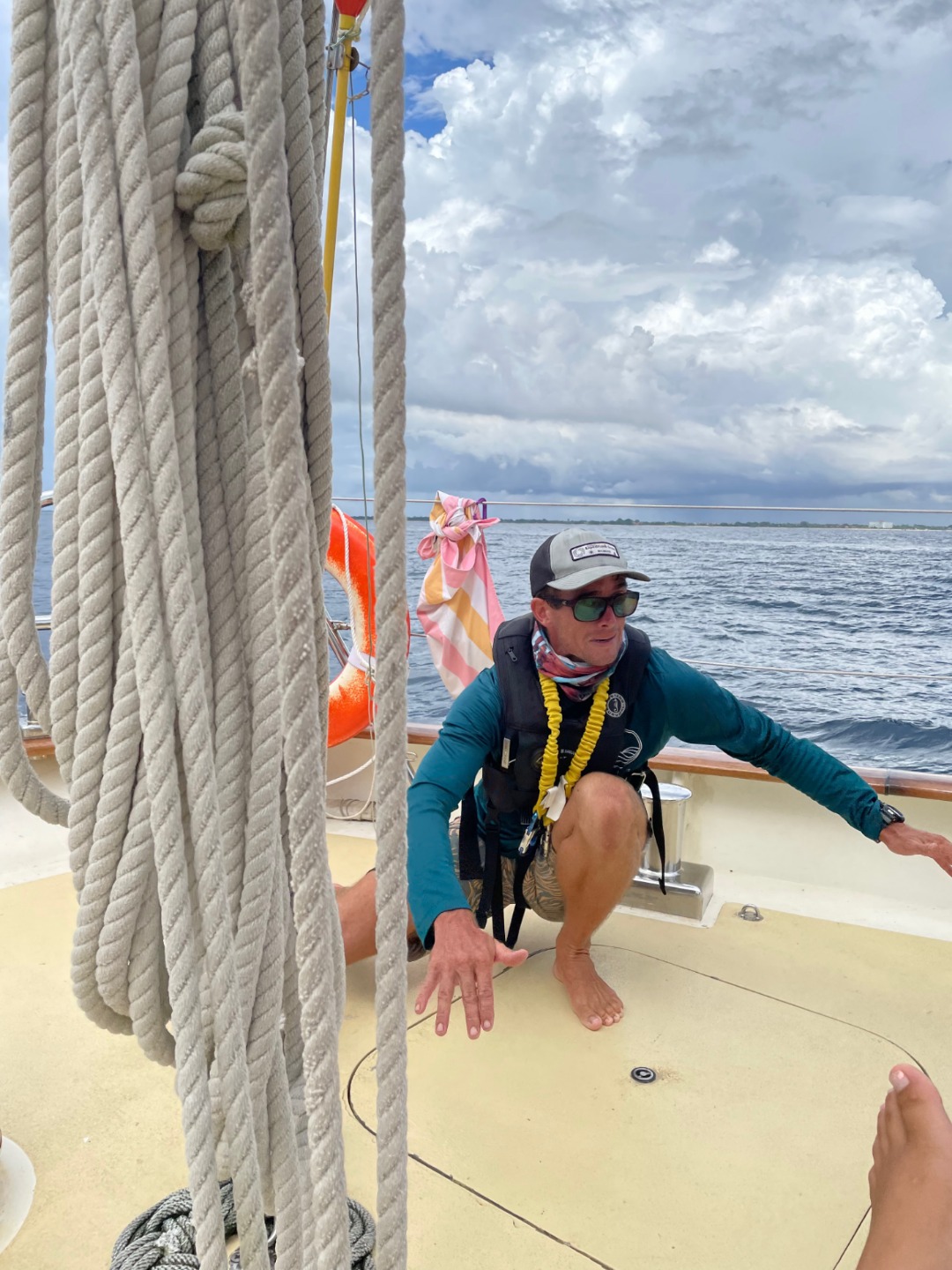 Watch team 2 was the last group for the day and brought us into the Gili Islands (!!). They lowered and flaked the sails that watch team three had raised this morning. Flaking the sails (folding the sails back and forth like a fan over the boom) was type 2 kinda fun: fun that is only fun in hindsight. We lowered the anchor at 5:30, just in time for a PFD (personal flotation device)-free dinner.