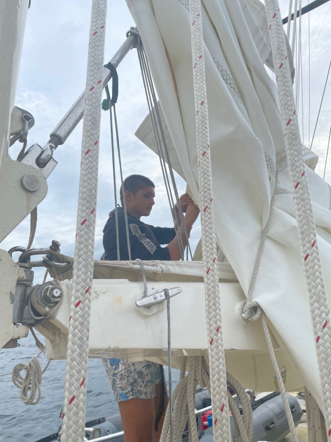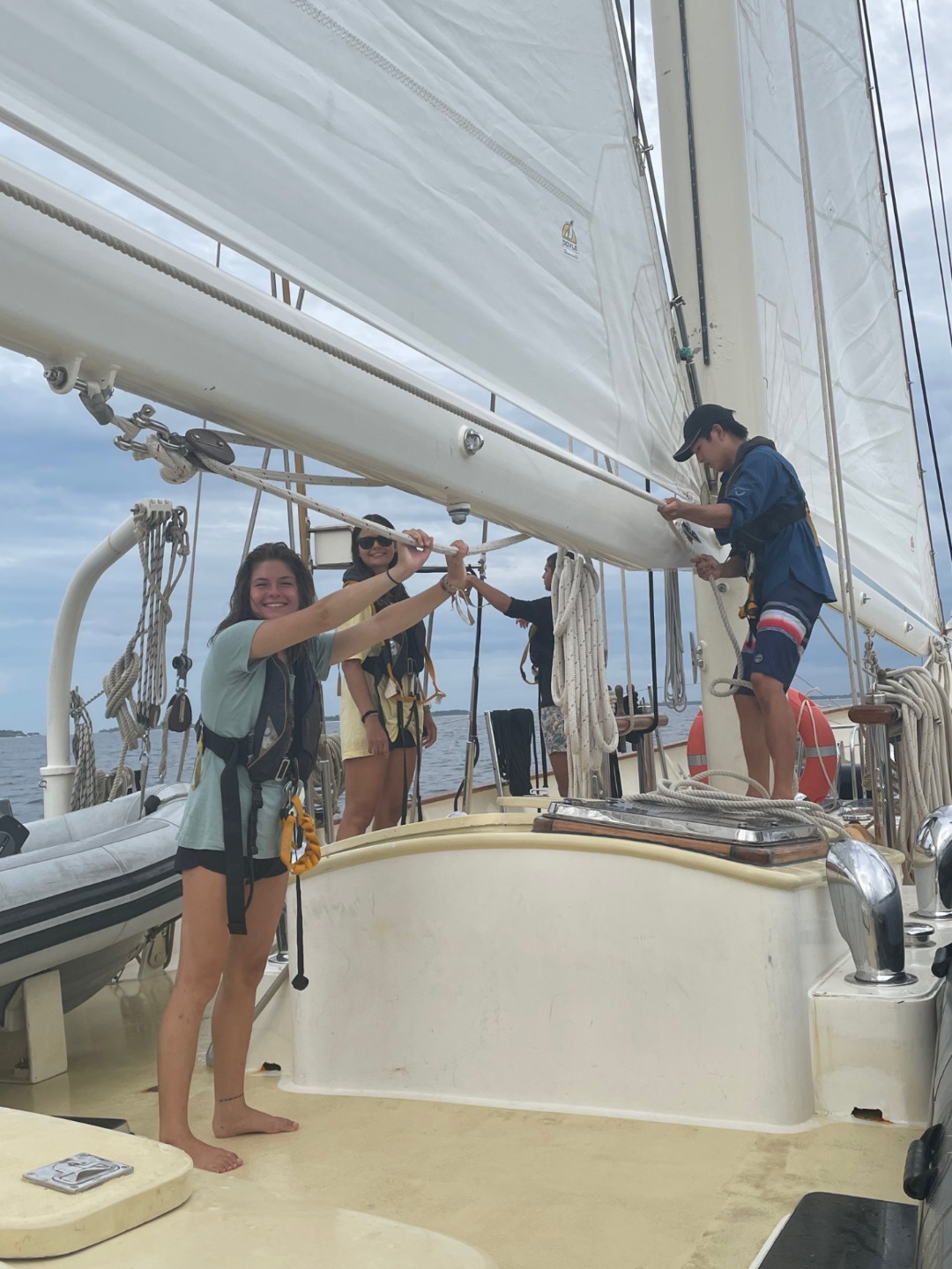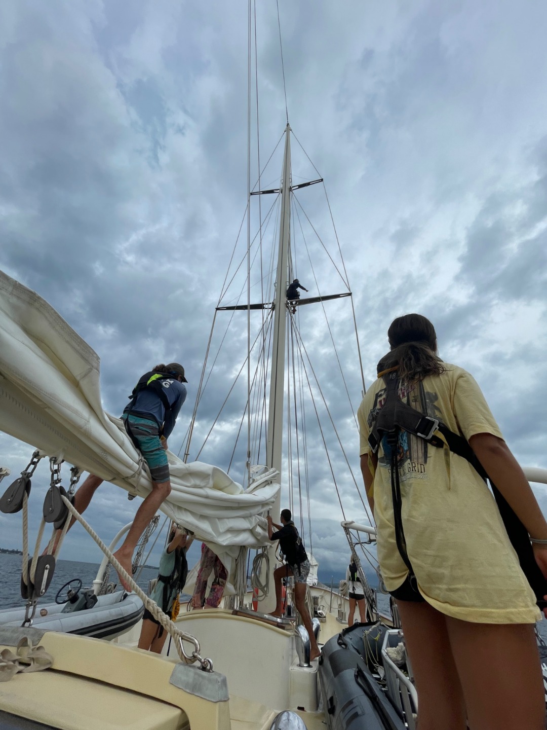 After our first class in the morning, watch team three was on watch from 10 am-1 pm. They raised two sails in order to harness the power of the skies for our travels.