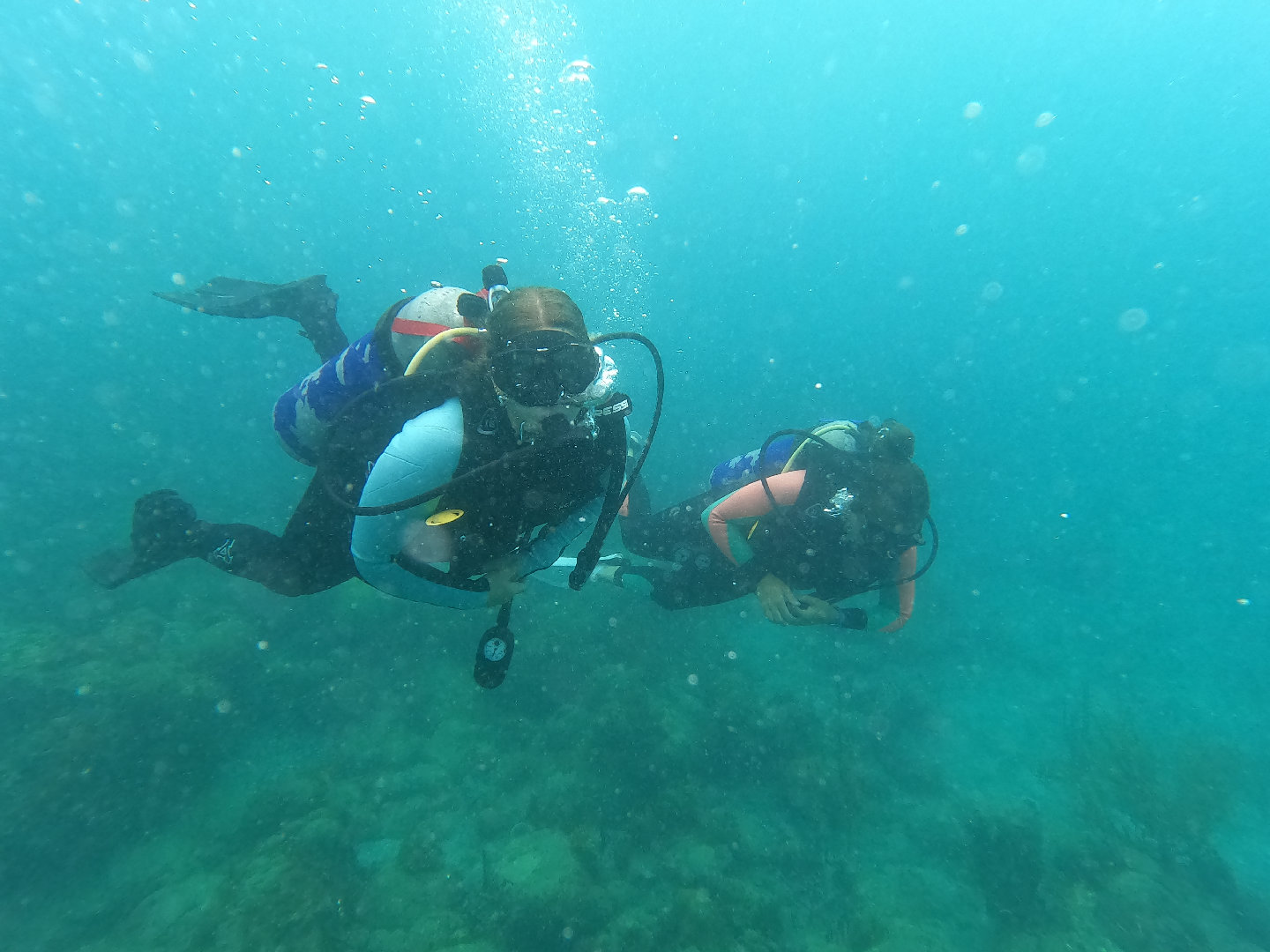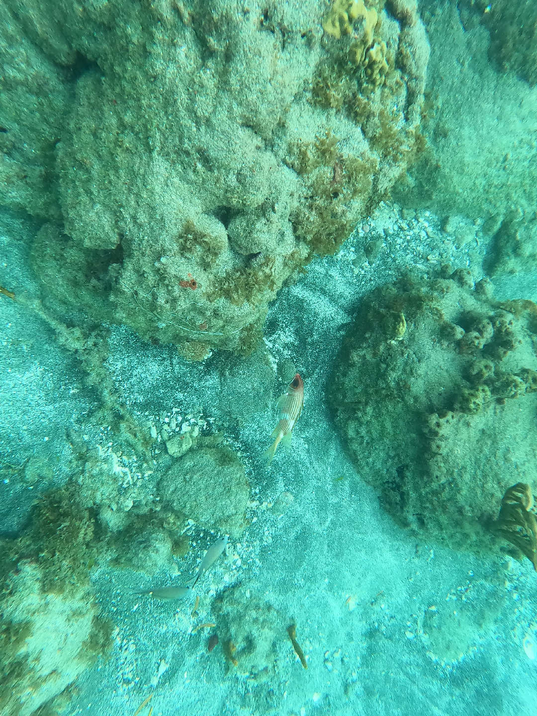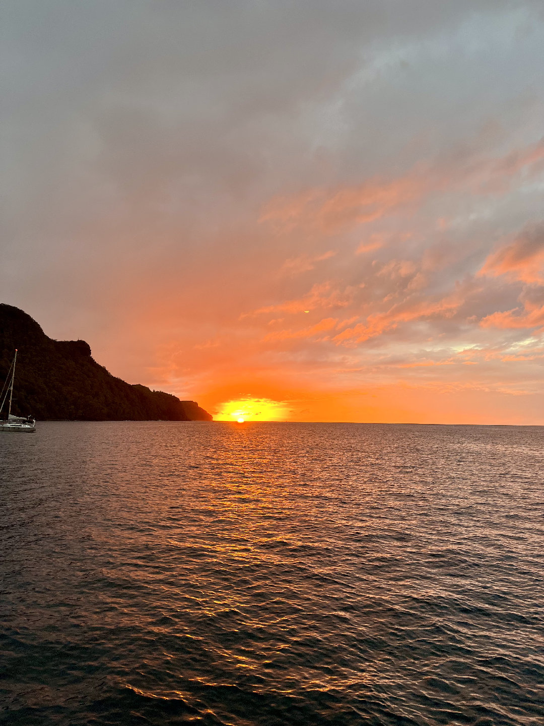 Waking up in Bequia, the air was cool and misty, which was in contrast to the past few previous stops on our journey. With dark clouds moving in and scattered showers, we enjoyed a cozy breakfast down below in our dry pajamas. This morning, we had fresh fruit with yogurt, granola, toast, and jam. After breakfast cleanup, I hosted a seamanship study hall session to prepare for the students’ IYT International Crew Course certifying exam in about ten days from now! This exam will cover things like sail handling, boat safety, emergency procedures, and more. Afterward, Ben gave a marine biology lecture on arthropods and echinoderms, which was followed up with a bit more free time to work on classwork before lunch. For lunch, the chefs (Rocco, Evan, and Alev) prepared rice bowls with black beans, refried beans (a Rocco specialty), and lots of veg. After lunch, we continued on with a more Bequia-specific activity. For those who do not know, whaling is engrained in Bequia’s culture. Each year, the Bequian people are given a maximum quota of 4 whales to be hunted for cultural practice. The meat is distributed throughout the community, and the bones are carved into artwork. This afternoon, we debated the merits of Bequian whaling from the perspectives of environmental organizations (like Green Peace and Sea Shepards) and local whalers and community members. Ultimately, we concluded that the topic is complicated and multifaceted- taking into account cultural significance and environmental concerns. Afterward, we prepared for a fun dive led by Evan as part of his Dive Master candidacy. Evan did a great job leading his first dive. I joined the dive as well and saw a really funny-looking fish, which, after describing it to Heather, I learned was a spotted drum. Zoe took some great photos on her GoPro, which we will include in this post! After the dive, we continued on with our nightly rituals- ocean showers, sunset dinner, squeeze, and clean up! We go to bed looking forward to a fun day exploring the town tomorrow. Cheers!