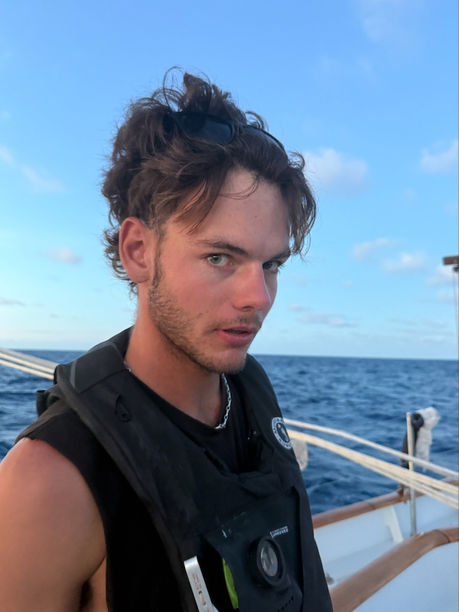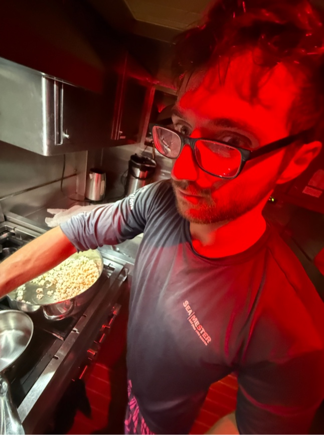 The 4-8 sometimes feels like you’ve stood two watchesthe pre-sunrise night watch, where you still have constellations and bioluminescence. On my watch team, we play FORB, where we guess what time the full orb of the sun will be visible on the horizon. Sometimes it’s so dark that you think maybe this morning the sun isn’t planning on rising. But inevitably it does, and then you get the post-sunrise morning watch. This is the perfect time where there’s enough sun for it to be light out, but it hasn’t gotten hot yet. Then, just when the light starts to be bright enough to hurt your eyes, your watch ends, and you can close them again.