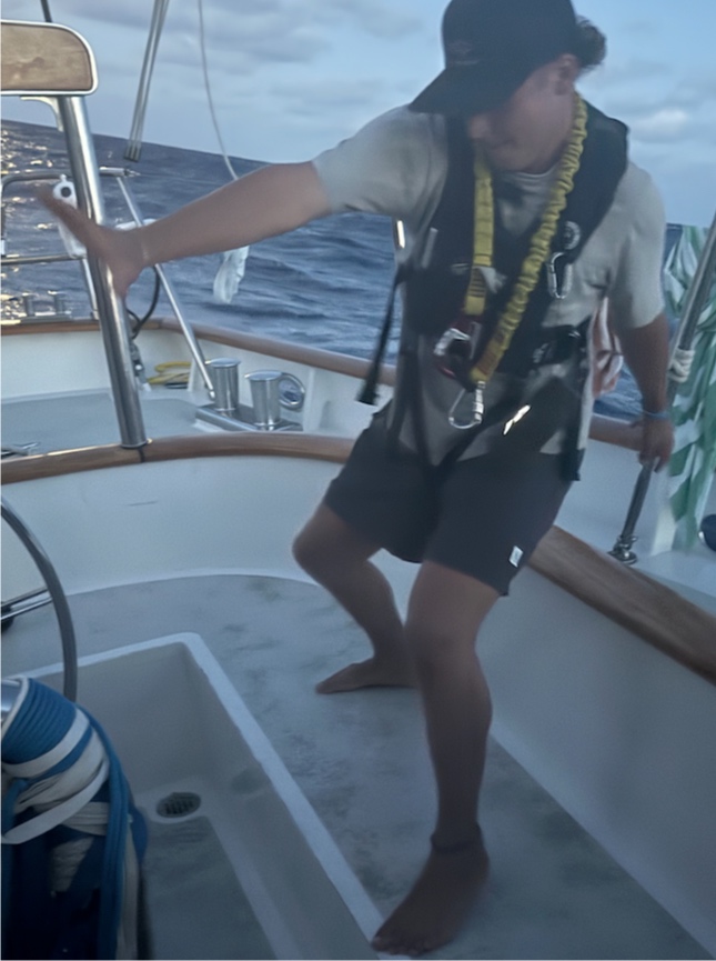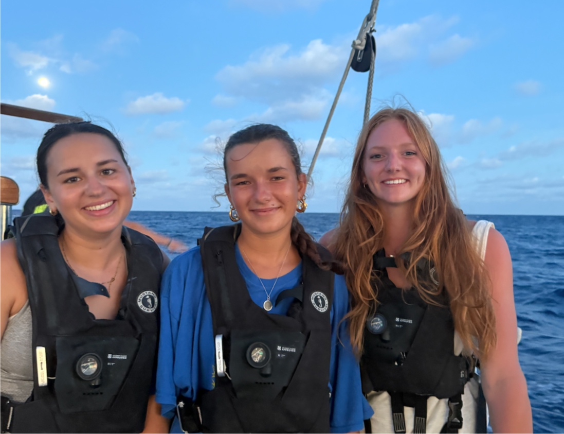 The ocean’s slow, undulating swells lift us up and roll us over – sometimes it’s hard to imagine how anyone is sleeping down below as we dip the booms down towards water that froths underneath our caprail. The waxing moon has given us so much light the last few night watches; I can see the expressions on my watch team’s faces (and sometimes their eyelids). The first hour of watch starts slowly as everyone recovers from being yanked out of their dreams, and then all of a sudden two hours on the helm has gone by and we’ve discussed every fruit-based dessert we can’t wait to eat the next time we have fruit, horror movies we wouldn’t watch again, and stories that start with every letter of the alphabet.