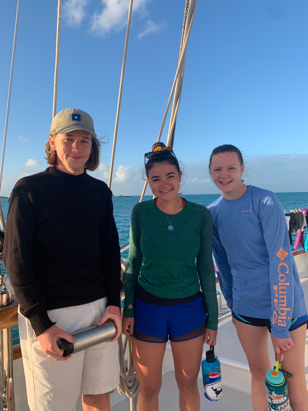 Photo 2: Bennit, Meghan, and Maddie on deck before lunch. They aren’t posing for me; they are posing for Tom.