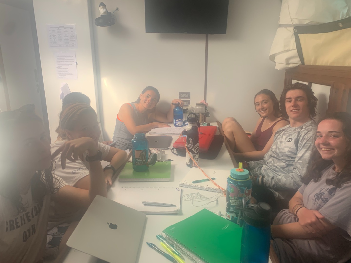 I woke everyone up at 7 this morning to find them sleeping soundly in their bunks. This was my first-day being skipper, so I felt really guilty to be waking everyone up. In preparation for the upcoming day, everyone gathered up on deck and awaited further instructions. Some people went scuba diving, and others remained on the boat to study. My group attempted to scuba dive, but we deemed it unsuccessful after the low visibility in the water. Despite the poor conditions, it was still a really fun and eventful morning. We had several conversations on the dinghy, which was really fun and eventful. Everyone is really excited and eager to get their certifications. The people who were already certified went on a navigation dive. This was fun. And also exciting.