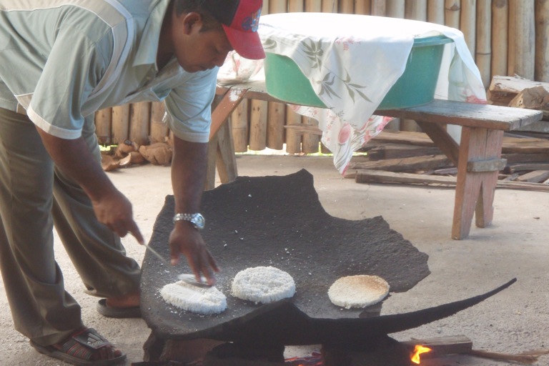 As our vans raced around the mountainous terrain of the island, every new bend in the road brought something new, from fruit to waterfalls. Provisioning bags slung over our shoulders, at one point, we stopped at a grapefruit farm. Into the trees, the shipmates went to throw down the citrusy delicious fruit. Throughout the day, the van quickly began to fill up with more than enough fruit to feed us for a few weeks. Sea Cat made sure that we stopped at as many fruit stalls along the side of the road as possible to stock up on passion fruit, bananas, and plantains and also pull over for the free picking of mandarins, coconuts, coffee beans, and cocoa beans that grow along the side of the road. In Carib country, we ate cassava bread freshly baked over a wood fire. At another stop, we shelled cocoa beans, crushed them up, and added a bit of sugar to make chocolate, all the while playing with puppies, to Yeoman’s delight. With our stomachs full, we decided it was time to stop eating and start swimming. In the cool, crisp water of Emerald Falls and Trafalgar Falls, we dove. Ending the day, we took a dip in a natural hot spring before heading back to Argo. Now, that is what I call experiencing Dominica.