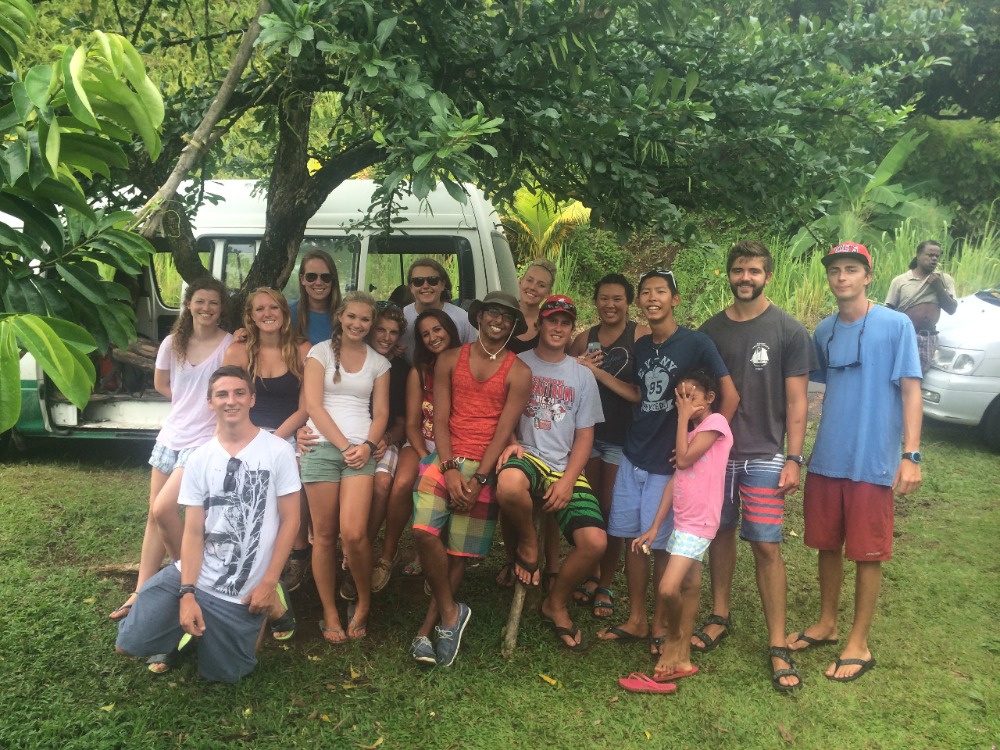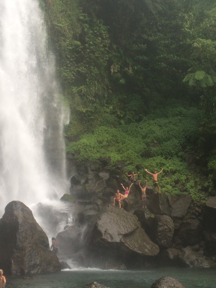 I’d have to say today was the best day we’ve had so far. We woke up bright and early and were on the land by 8:30. We went on a full-day tour of the island. Our driver took us to 3 different waterfalls and hot springs. We even climbed up one of the waterfalls- it was amazing! Along the tour of Dominica, our driver stopped periodically and picked up different fruits for us to try. We tried over 12 different types of fruit, some of which we’d had before, like mango, and others we’d never heard of, such as breadfruit. It was incredible to have the ability to stop on the side of the road to climb a tree and pick starfruit or walk down the road and pick up mangoes. All of the fruit was delicious, and we now have a ton of fresh fruit on the boat to enjoy in the coming days. Although we ate a ton of fruit, we were all still rather hungry. We now know that peanut butter jelly sandwiches taste amazing no matter where you are. Whether it be on the boat, at the base of a waterfall, or in the back of a taxicab. Dominica is stunningly beautiful, and it’s my favorite island we’ve visited so far.