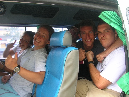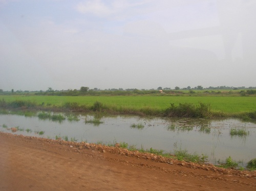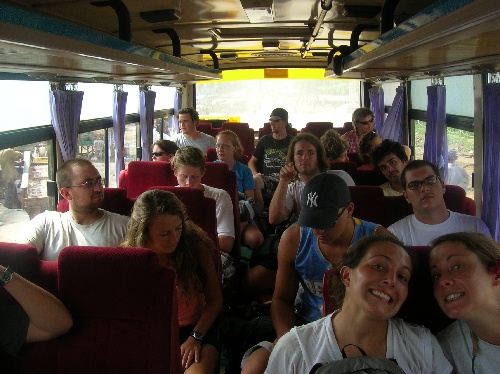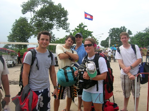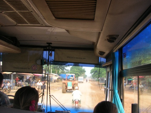 What a busy day! We awoke at 5 a.m. to a thunderstorm hanging over Ko Chang and, after a very wet taxi ride, arrived at the ferry terminal for the half-hour ride across. On the mainland, we loaded into two minibusses for the approx. 4-hour drive to the border, stopping only to get our pictures taken for the visa application. While our paperwork was being processed, we had a very chaotic lunch and then walked across the border and through immigration. This took a couple of hours, and it was about 3 p.m. when we finally boarded the bus that would take us all the way to our hotel. And what a ride that was! The road wasn’t paved, but that sure didn’t stop our bus driver from going full speed ahead. It was fascinating to see the Cambodian countryside pass by, full of beautiful fields and small villages with people waving to us at every turn. Everyone was excited to finally arrive at the hotel just after 7 p.m., have dinner, and join some Semester at Sea students for a swim in the pool. The hotel is gorgeous, but we can’t wait to get out and explore tomorrow!