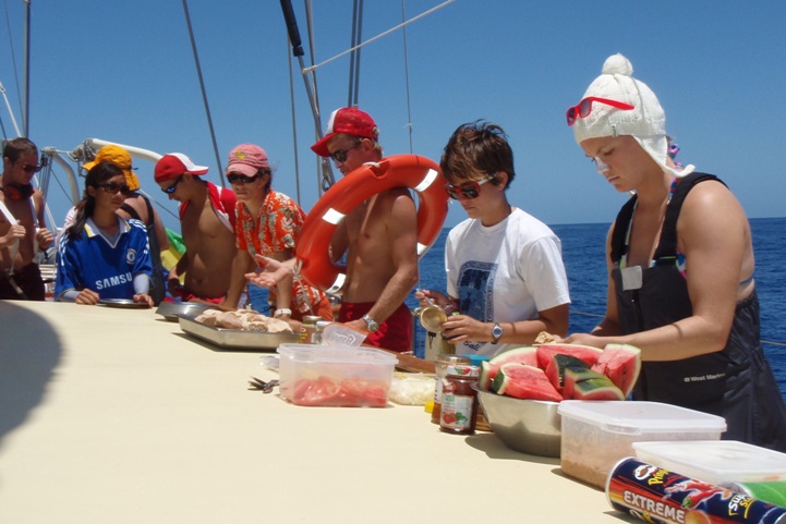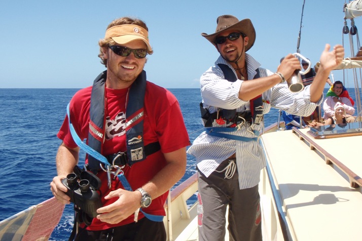 Dawn broke with the warm sun at our backs, and the wind and seas were the calmest we had seen since leaving Mauritius. Spirits were up, and everyone was preparing for the day of excitement ahead. The common phrase of “speed and course” was changed to “trick-or-treat,” and every child’s favorite holiday reached the decks of Argo. Motoring about 175 miles off the east coast of Madagascar in the Indian Ocean, everyone on board started to get into their roles and costumes and gathered in the cockpit for lunch. Joining us for lunch, we had a wide assortment of guests ranging from the elusive Pirate to the Village People. The festive crew began to make their sandwiches, then all of a sudden, there was a banging and scratching coming from below decks, the brave lil iPod opened the laz, and a Thai stow away shot out from the murky bilge water muttering, “Please. Please, don’t hurt, don’t throw off. Want massage? Bread?” After lunch, the costume contest began, where each one of us strutted our way down the deck with appropriate catwalk music being played in the background. In the end, Kevin stole the show with his original stowaway costume, and Chancy and Joe won the group prize for dressing up as each other. After the festivities were finished, and the whole crew hopped up on candy and rejuvenated after the holiday fun, another day ended on Argo with the warm sun on the horizon and all of us looking forward to what tomorrow has in store while making our way across the Indian.