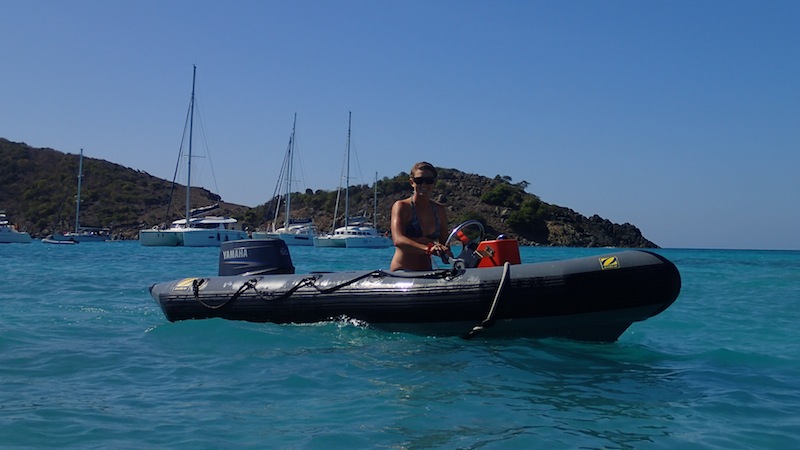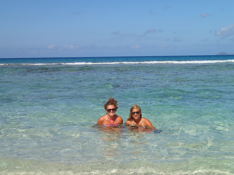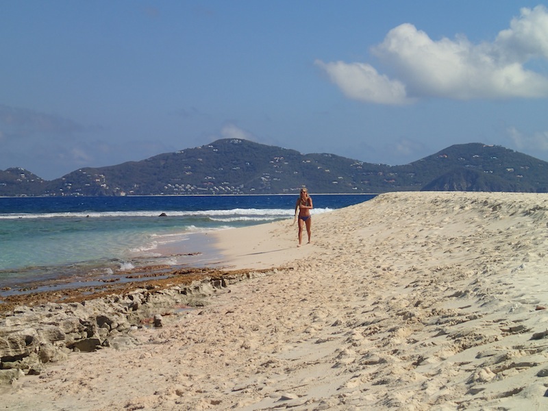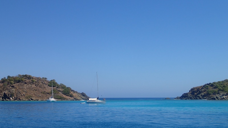 We started the day in Lee Bay, Great Camanoe Island, a small, quiet spot just a mile or so northeast of Tortola. After a quick breakfast, we fired up the diesel engine and began motoring westward towards Jost Van Dykes. While underway, the crew launched into some end-of-trip cleaning projects. Some people tackled organizing and cleaning all the cabinets in the galley. Others went deep into the bilges and swept out all the crud that had been accumulating there over the course of the trip. It’s all a team effort to make the boat as good as or better than when we started out at the beginning of the semester. We pulled into an anchorage by Sandy Spit at the east end of Jost Van Dykes, and after a quick lunch, got ready to dive at a site known as the playgrounds. The playgrounds are an underwater jumble of boulders and corals, populated by everything from tiny fry to large spotted eagle rays. The crew spent the afternoon exploring this site and hanging out on the picturesque beach at Sandy Spit. Tonight, the crew will be presenting the findings from the research projects that they have been conducting over the course of the trip. A well-rounded day in a tropical playground!
