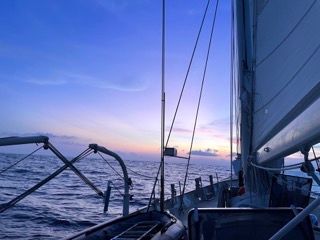 The search for our rat, Clayson, continues with no new leads. Assassin prodigy Tomer is still out there. At his hand, Cadets drop dead as effortlessly as the falling leaves back home. Time is a fickle thing here. Watch flows into sleep, meals, and homework, which leads back into the watch. As we continue to get into the routine of passage, chapter 2 takes its toll on us all. In seriousness, while we are all very sleepy from watch (812 pm last night for watch team 1), things are quite good. A new and wonderful quiet background, Argo, because the conditions have allowed us to shut off the engine and travel solely by sail. We are laughing often, having and incredible time, and feeling lucky to be here. We are just starting to have free time and are getting more and more comfortable with the jobs and handling sails. helming and boat checks are especially nice now that we are truly sailing. We cant see land anymore, and the sea is very beautiful, especially at night, when the ship leaves a trail of sparkling bioluminescent that mirrors and rivals the Milky Way above. Today, watch team 1 filled the time with a storytelling theatre. Phillip played the dragon princess, Kiley played the dragon king, Meg played the fisherman, Ainsley played various characters, I played the turtle, and Gabe narrated. Hannah and Ava continue to fill the air with their heartiest of chortles.