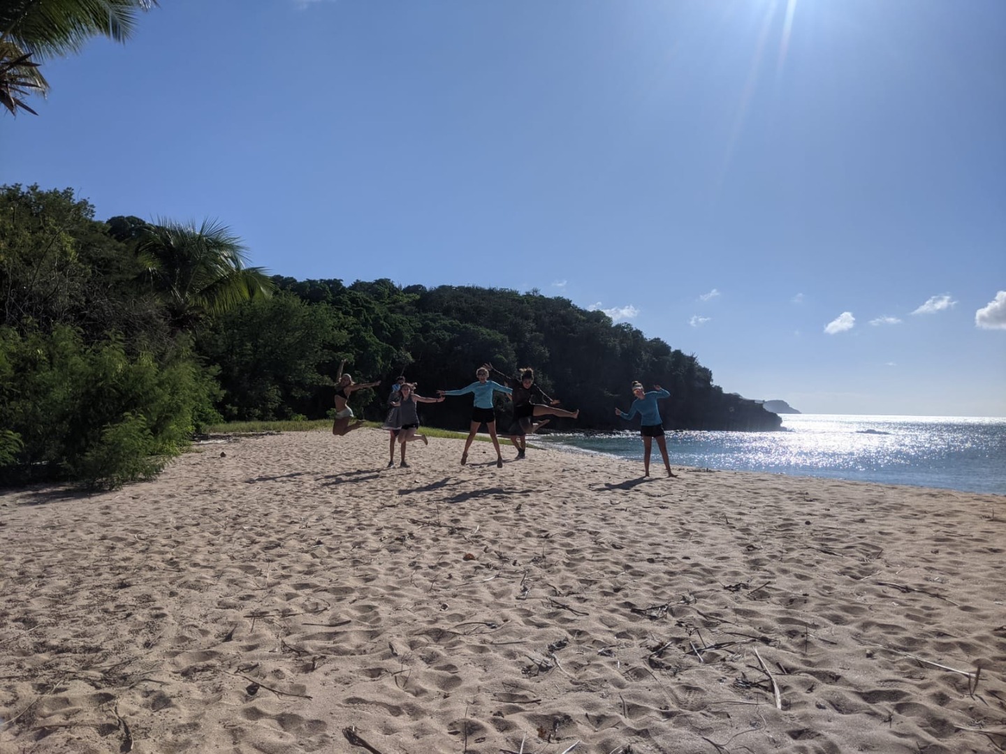 After a delicious breakfast of hashbrowns, bacon, baked beans, and tomatoes (a bit of an homage to Ash, our favorite British staff member), we had a little bit of free time before beginning our day. Most of us opted to work on our oceanography essays, while a few went snorkeling around the cays. After that, it was time to get underway to Mayreau, Ocean Star’s very, very temporary home (we leave tomorrow). Fortunately, we had a pretty smooth 1-hour motor over. While underway, we were able to have a little quiet time, to study, read, or just rest up for what we knew would be a big afternoon. We had a quick lunch of pesto pasta, roasted veggies, and garlic bread (yum), and then we all met up on the beach for some games led by Ash.