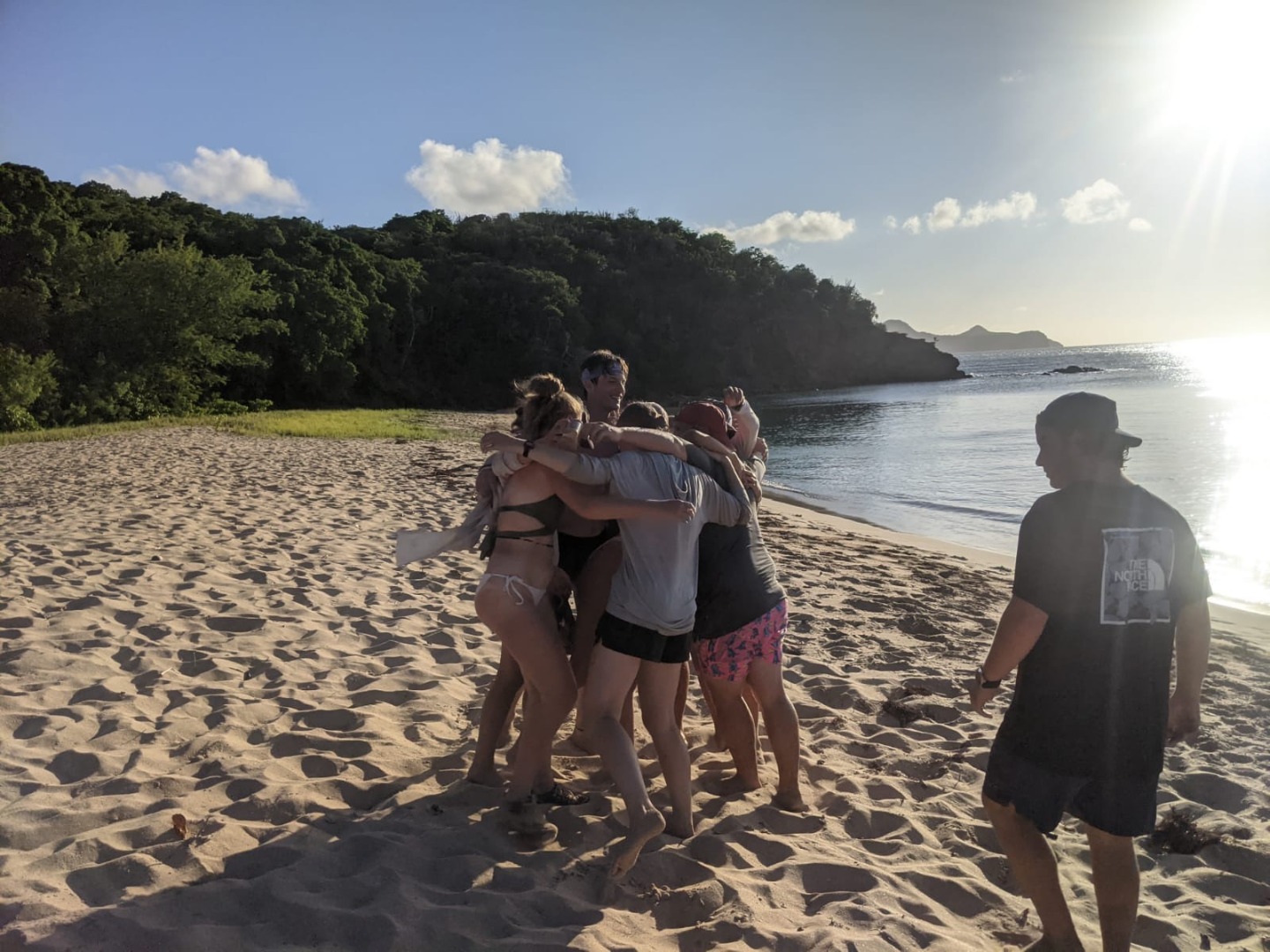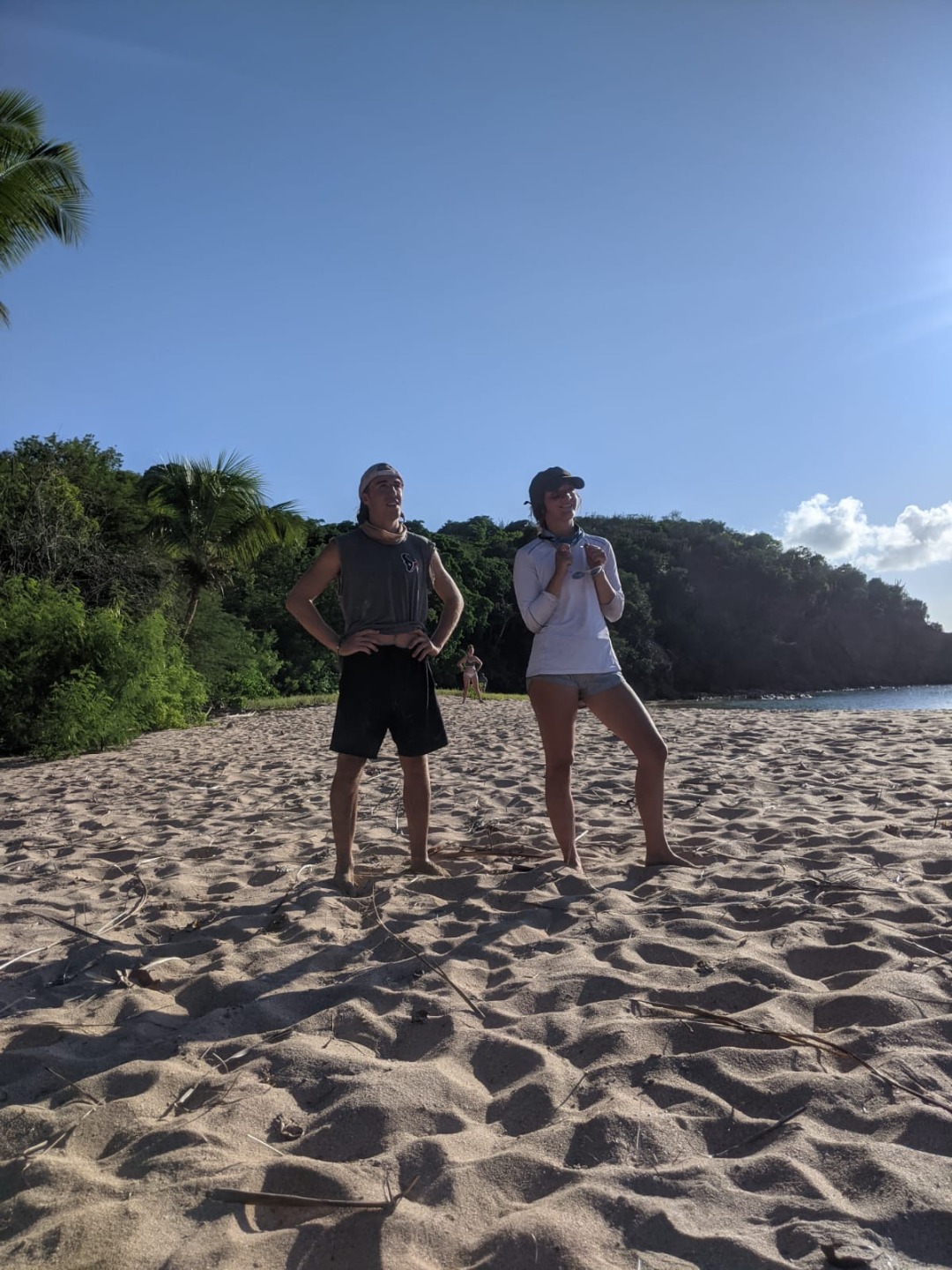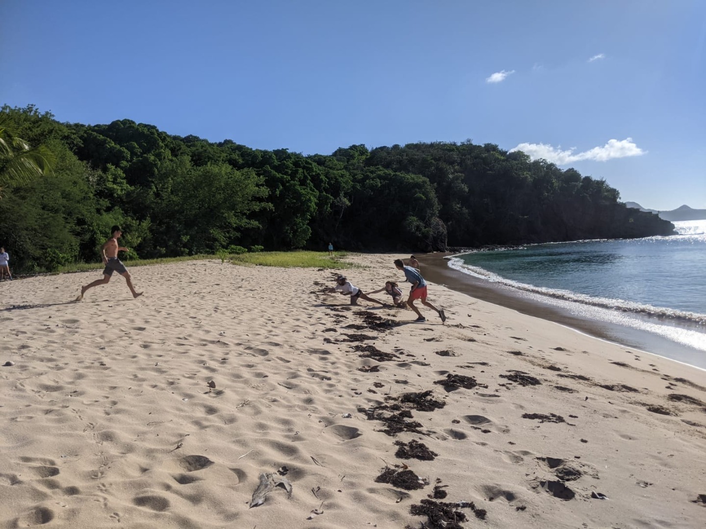 We were split into two teams: Sam, Logan, Eamon, Lucy, Eulalie, Alexis, Teddy, and myself; and Quinn, Stef, Lucia, Maxime, Sophie, MacKenzie, Will, and Tate. The former was known as AQ or Action Quest, while the latter was known as GB or Go Beyond. Immediately after getting our teams, things got serious VERY fast. We almost never have any competition on the boat as we’re always working together, which is obviously a wonderful thing, but a few of us, myself included, were ready to go crazy at the idea of a (semi) lighthearted competition. After strategizing for about 15 minutes and pretending to hide a few different flags to throw off the other team, we got straight down to business. The game feels like a complete blur, although I do remember flipping completely over Maxime onto the sand (and tagging him) and then about 30 seconds later having to get up, chase Quinn down, dive for him and ALMOST make it. And, of course, I remember seeing Eamon barely make it back onto our side with the other team’s flag and going completely nuts. That was definitely the longest, hottest, and sandiest game of capture the flag I have ever played in my life45 minutes to an hour 90 degrees (Fahrenheit) heat. And we weren’t even done yet. After my team’s completely expected and unavoidable win, and after soaking in the ocean to get our bearings for about 10 minutes since we were all completely worn out, we switched sides. We did the whole thing over, this time with Ash stipulating that we had to have the flag in plain view so our game would go a little quicker.