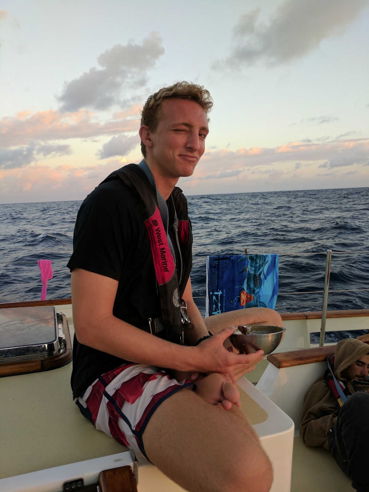 The semester rolls on, and we’ve all grown closer and more comfortable together. We have DMCs (deep, meaningful conversations) during bow watch, share stories and snacks with one another in the cockpit, cook together, sail together, clean together — even write music together. Each watch team and each crew as a whole has its own personality, and it’s both fun and rewarding to watch these personalities grow and develop. Whether it’s an inside joke spawned from a riddle that took someone eight hours to solve or a particular song that gets everyone up and dancing, this is the part of the trip where our weird Argonaut culture beings to emerge.