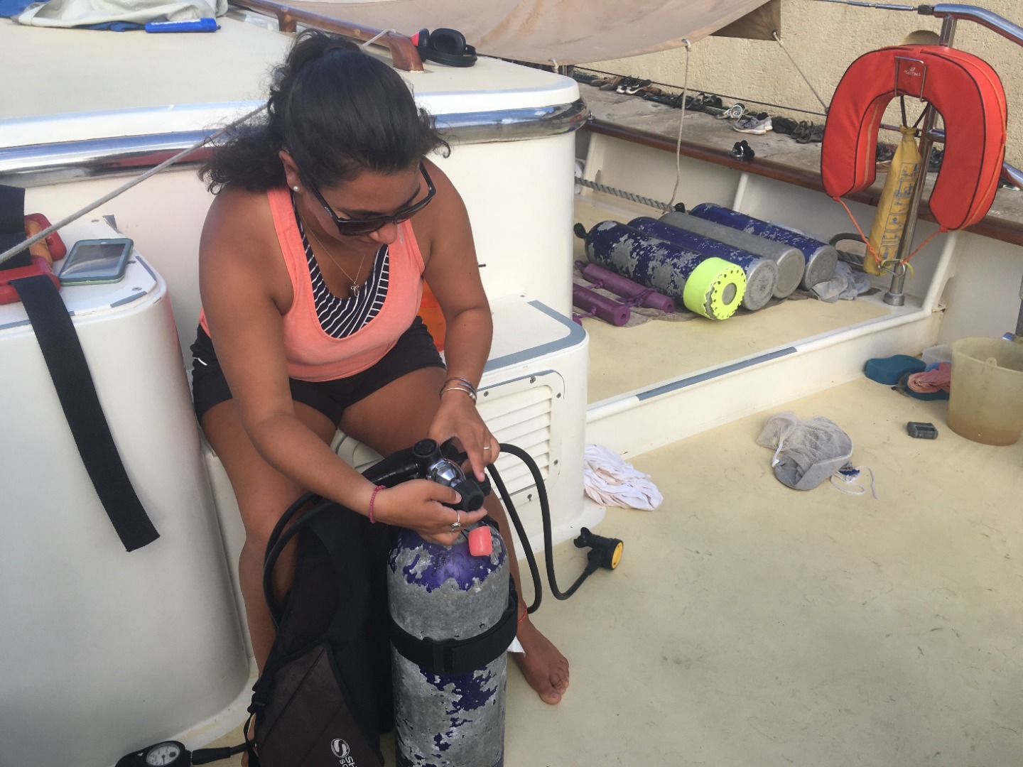 Today was a busy, SCUBA-filled day. Immediately following breakfast, we separated into groups. Already certified divers took advantage of a free day ashore, visiting Bridgetown, the capital city of Barbados, and a couple went surfing off of (definitely the real) Miami Beach. The rest of the crew alternated between working on SCUBA skills in the water and finishing the instructional videos. The morning group worked on basic skills and learned how to deal with problems, such as emptying a full mask or using an alternate air source. It was especially difficult to find neutral buoyancy and to float in place. The afternoon group continued working on skills that they learned yesterday, and actually experienced what it feels like to run out of air underwater. We are all super excited to finally get started with our open water dives and to see what else Barbados has to offer in the coming days.
