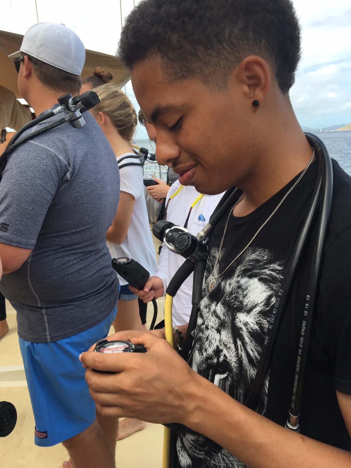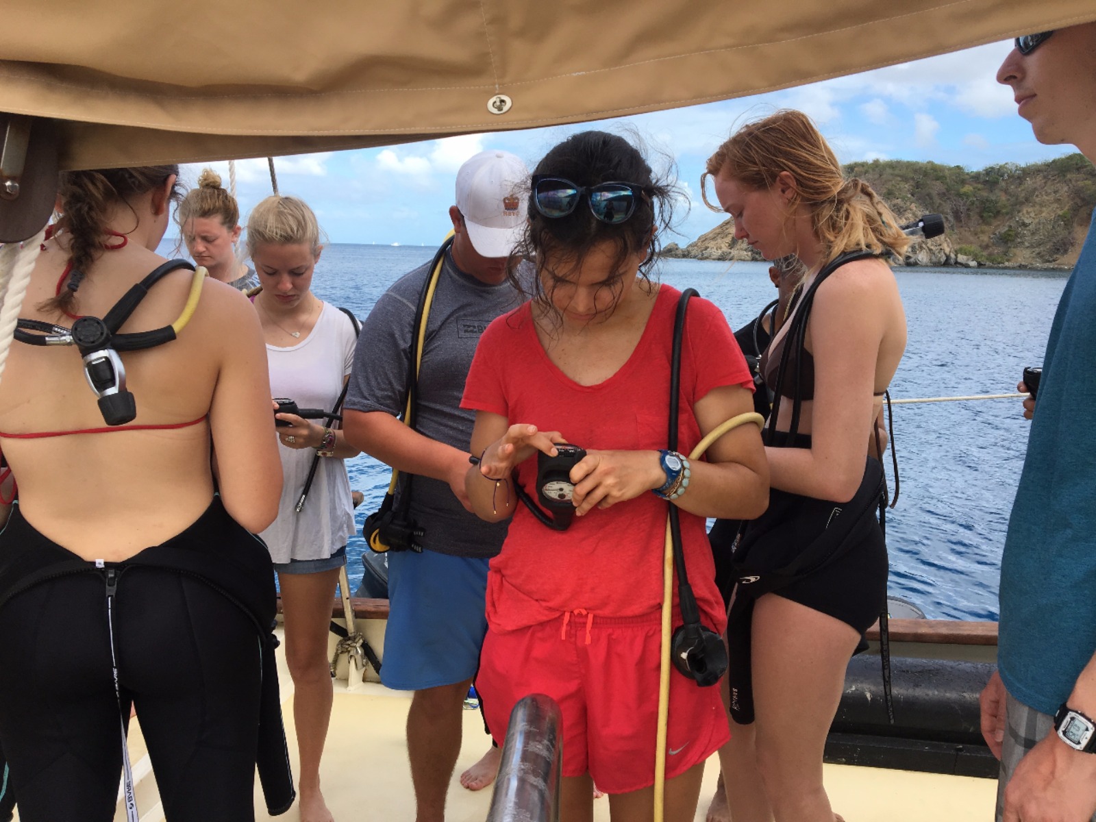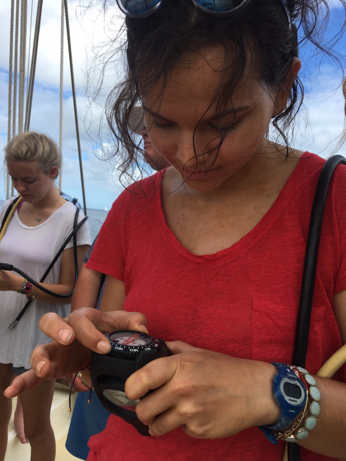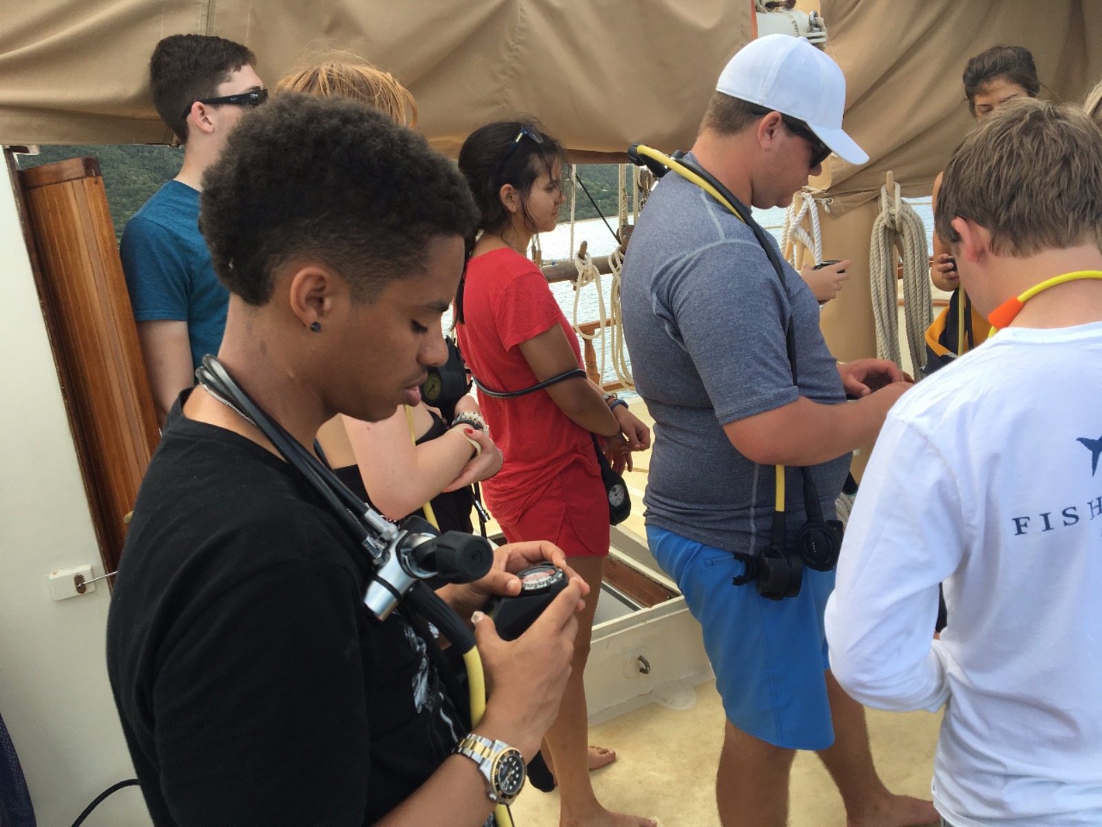Today started with a beautiful sunrise followed by some delicious boatmeal, which is just oatmeal served on a boat. As we started the morning with a Seamanship class, the clouds rolled in, followed by some light rain and wind. However, this didn’t stop us from walking up and down the boat, learning the names of various parts, and practicing knots. After, we all suited up and headed to our second-to-last certification dive for the PADI Open Water Certification. We finished up this chilly dive and headed back to home base for a delicious lunch of pad Thai and leftovers. After this filling lunch, we eagerly jumped back into the water for our final training dive and passed with flying colors. This now means the majority of the crew is certified to dive in 60 feet of water, with the few remaining stragglers soon to follow. The clouds then lifted as if in celebration of our accomplishments to reveal a spectacular late afternoon of relaxing and swimming before dinner. Dinner was a very satisfying meal of pesto pasta and sausage. As the sun was setting, we cleaned up dinner and headed into the cozy confines of the salon for our leadership class. This involved a very thoughtful discussion of morals and values with more than enough jokes thrown in to peacefully end another perfect day in the Caribbean.