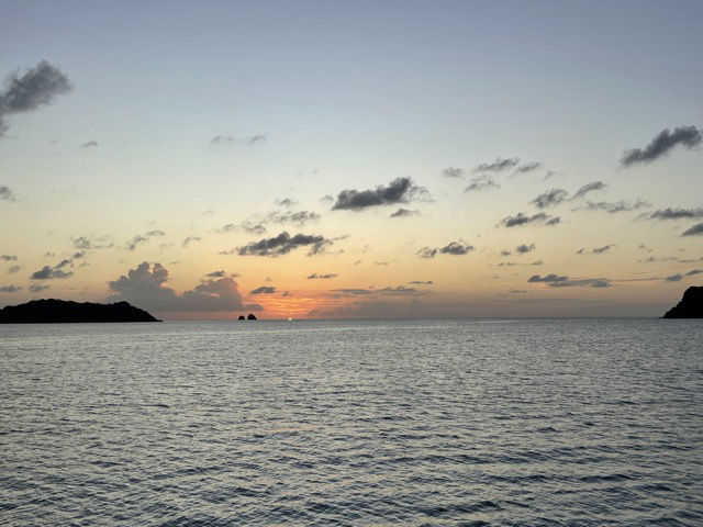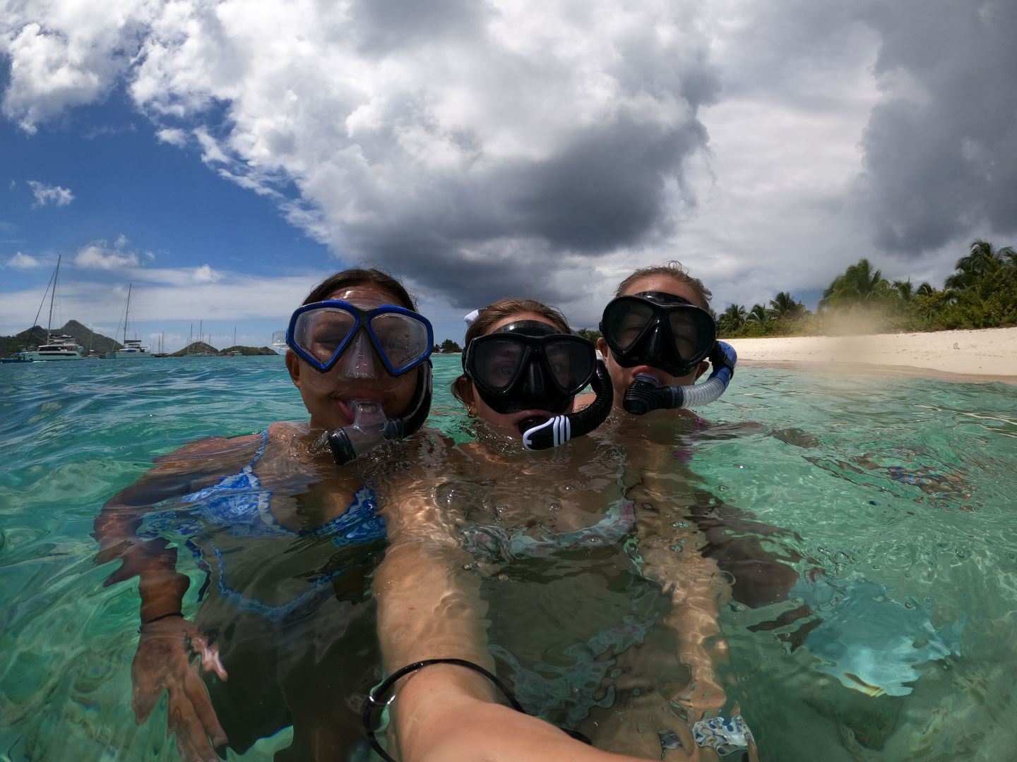 With so much to see, no surprise it was a couple of hours until everyone slowly returned to the beach towels for a rest, beaming with stories of eels, squid, Christmas tree worms, and much more! After the science scavenger hunt, beach time relaxing in hammocks and beach towels full of chatting, reading, and some napping. Back on board, the team did a quick dishy pit to get lunch materials all cleaned up for the chefs to start cooking up a feast! Dinner was a fan favorite across the board, with deconstructed BBQ chicken and tofu skewers. Drew, our skipper of the day (and our skipper every day :), asked the squeeze question: if you had to show a little alien friend around Earth, what is the weirdest thing you could show it? This sparked quite a few hilarious and creative responses ranging from an octopus to black Friday shopping.