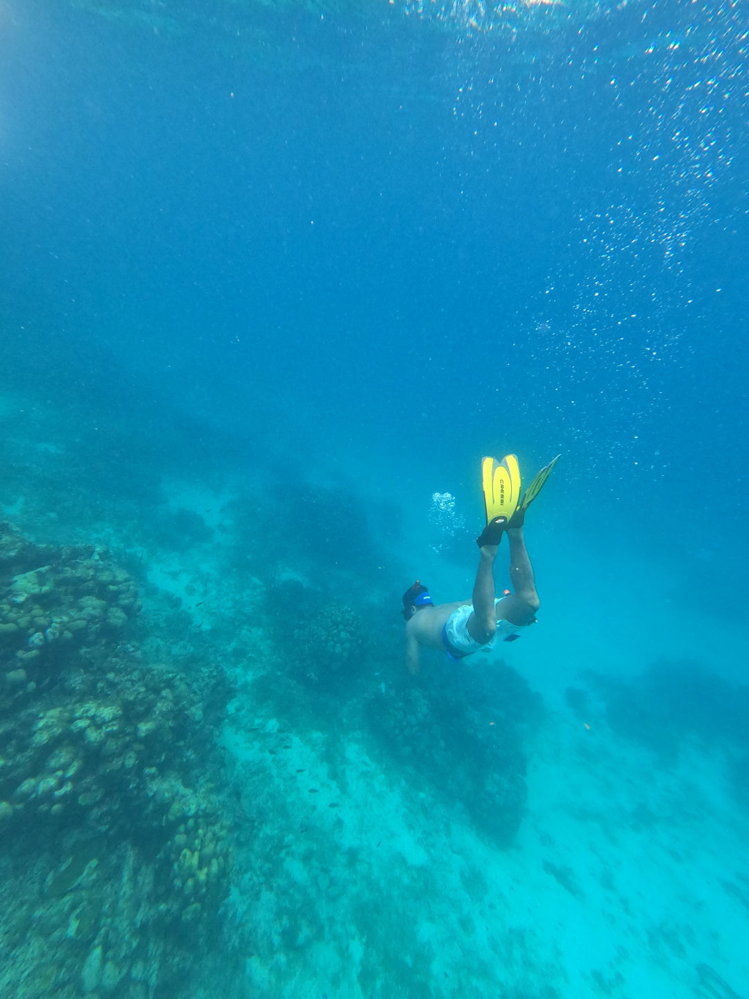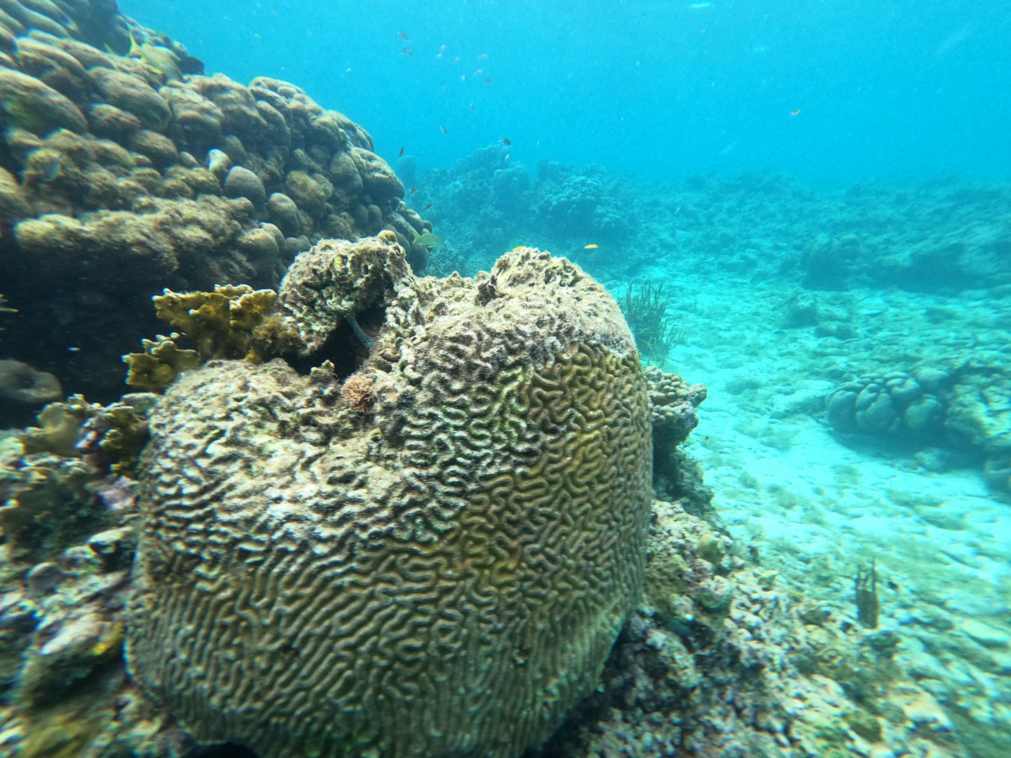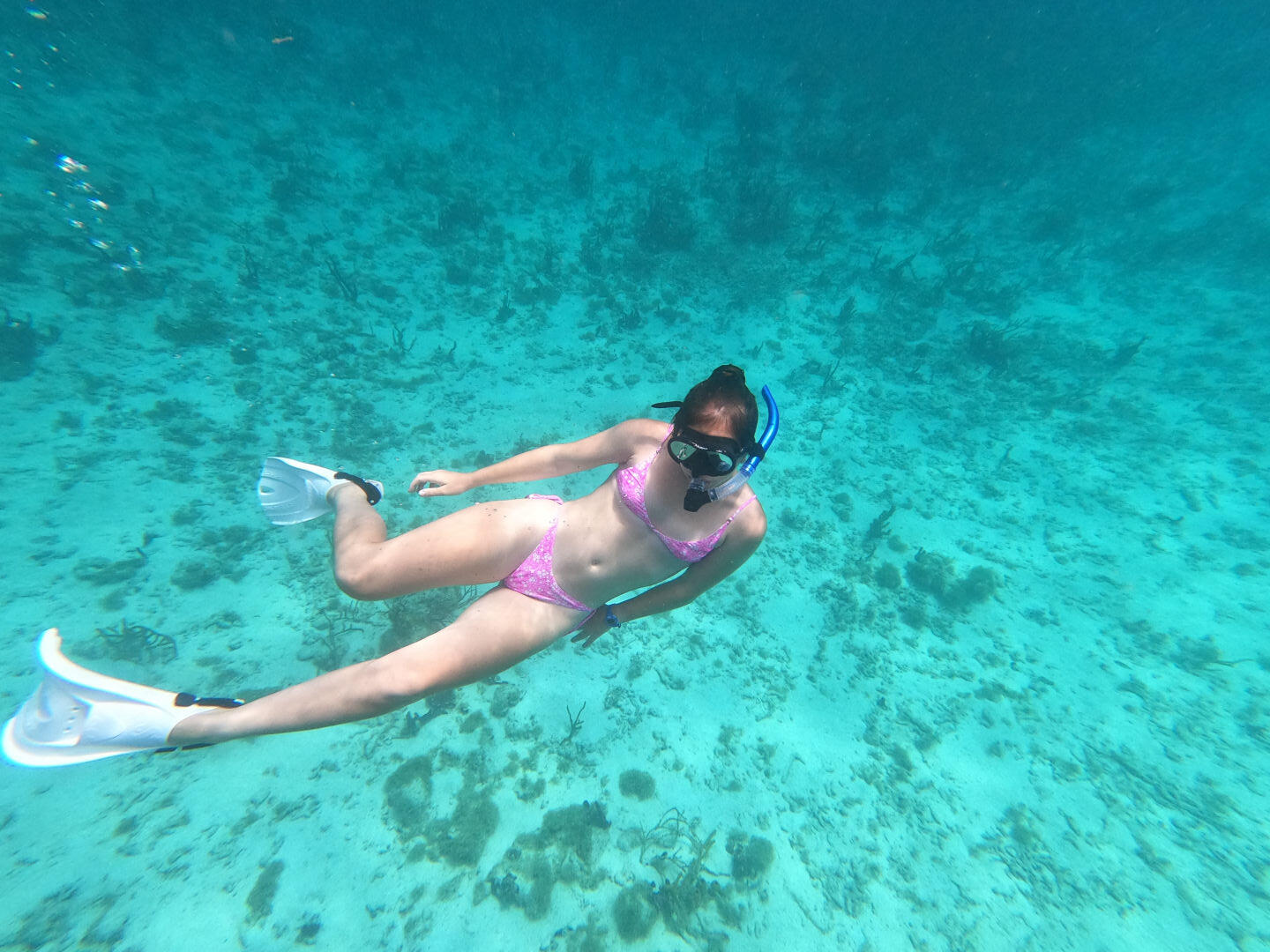 Once we stepped foot on the pink tinted sand of Sandy Island, we feasted together before breaking into smaller teams for the snorkel. To give a better visual, Sandy Island is what you would imagine a postcard of the Caribbean to be– a small little spot, uninhabited and almost seemingly untouched by human impacts. It takes roughly 10-20 minutes to walk its length, depending on the leisure of your pace. The long side closest to Ostar is beautiful sandy beaches dotted with towering palm trees. It is a long, narrow island with rocks on one narrow end and massive coral colonies just off the shore of the far, narrow side. The other long edge of the island is covered in large coral skeletons, with beautiful winding rows visible where their polyps once grew. The center of this little gem holds a tide pool.